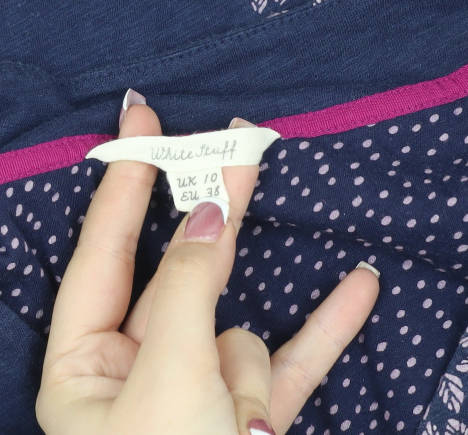 This charming White Stuff tunic, available in a delightful shade of blue with a beautiful floral pattern, is designed for women who appreciate comfort with a hint of style. Crafted from 100% cotton, this tunic ensures breathability and comfort throughout the day. It features a flattering V-neckline and long sleeves that provide a cozy fit perfect for autumn and winter. The tunic style, coupled with a regular fit, makes it an ideal choice for casual occasions when paired with leggings or jeans. The addition of convenient pockets enhances its functionality, making it not only stylish but practical as well. This tunic is machine washable, ensuring easy care for everyday wear. Its gently used condition shows no visible defects, affirming its excellent status. Embrace effortless style with this versatile wardrobe staple that's ready to accompany you through a variety of casual outings.