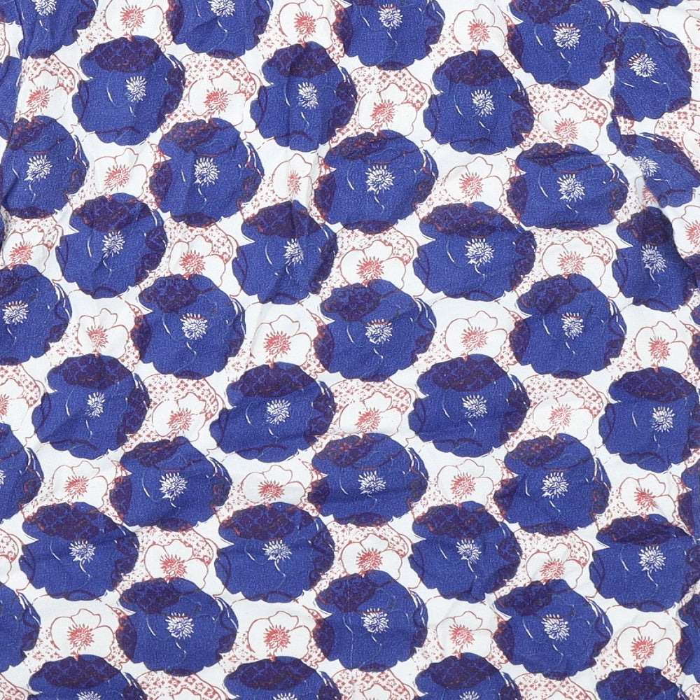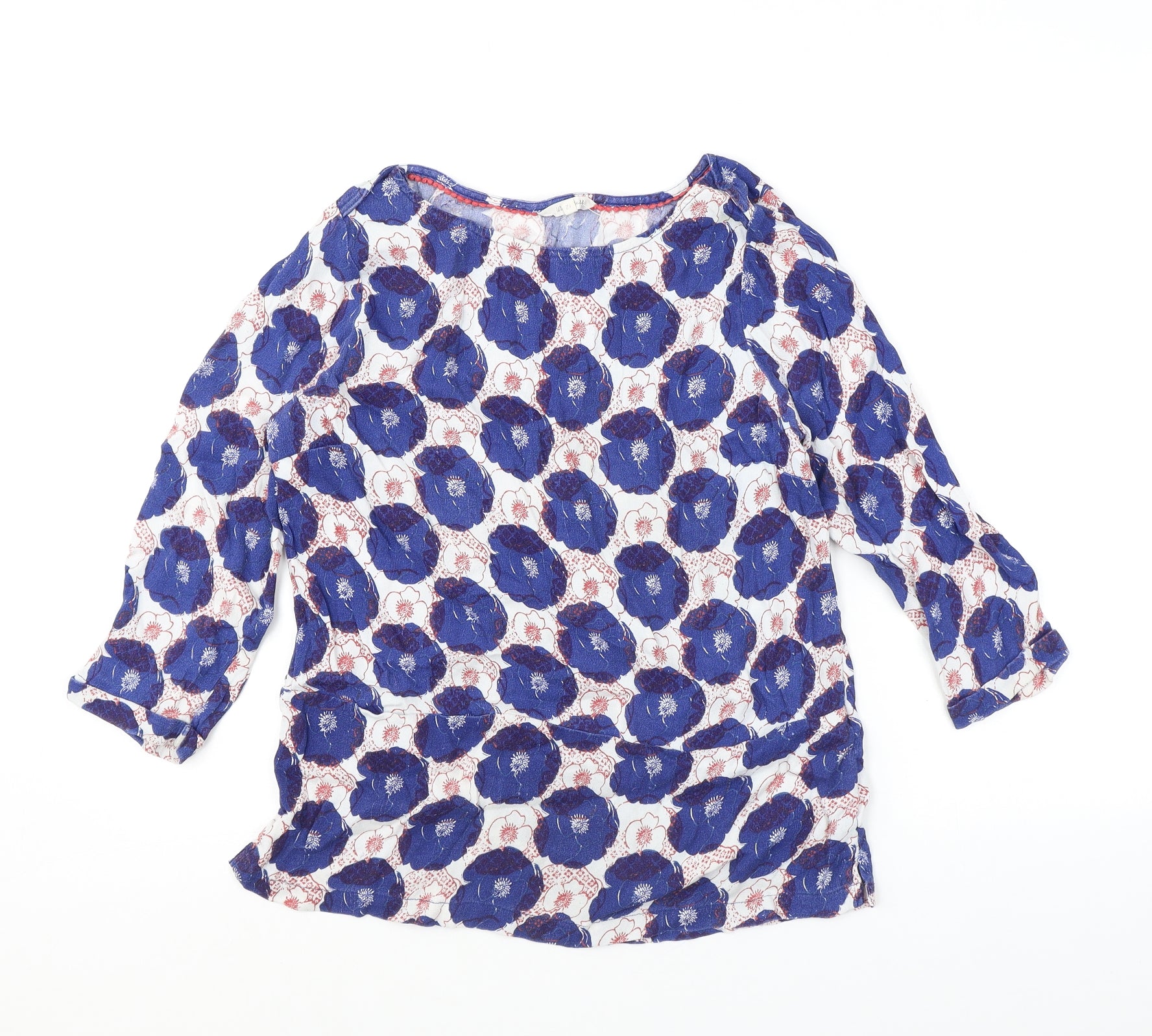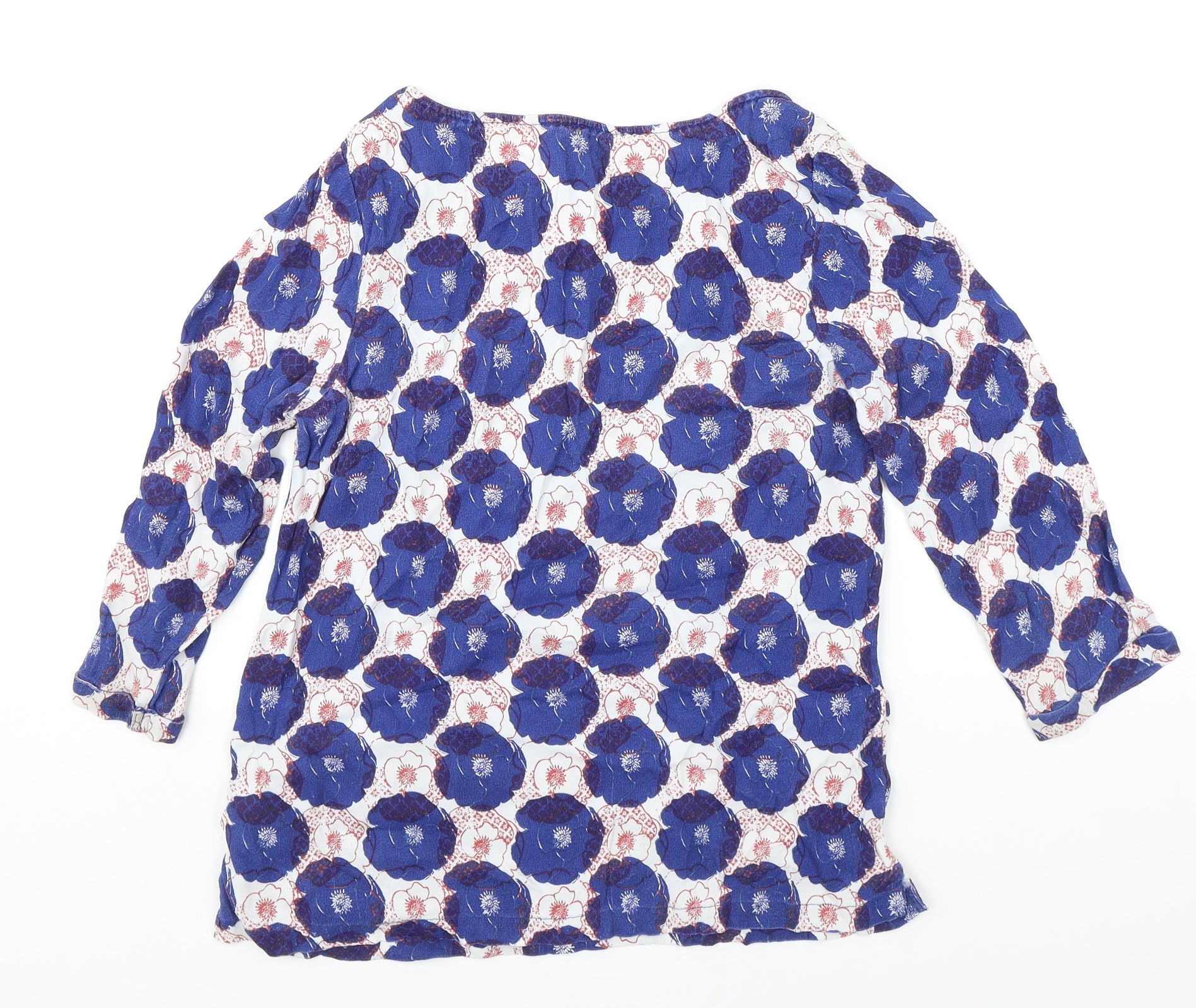 Womens Blue Floral Viscose Basic Blouse Size 12 Boat Neck
