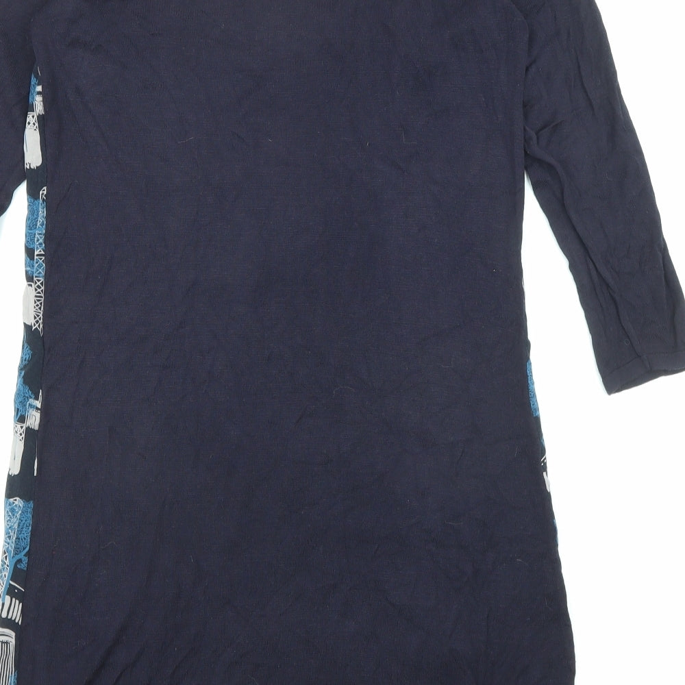 Marks and Spencer Womens Blue Floral Viscose A-Line Size 8 V-Neck Button