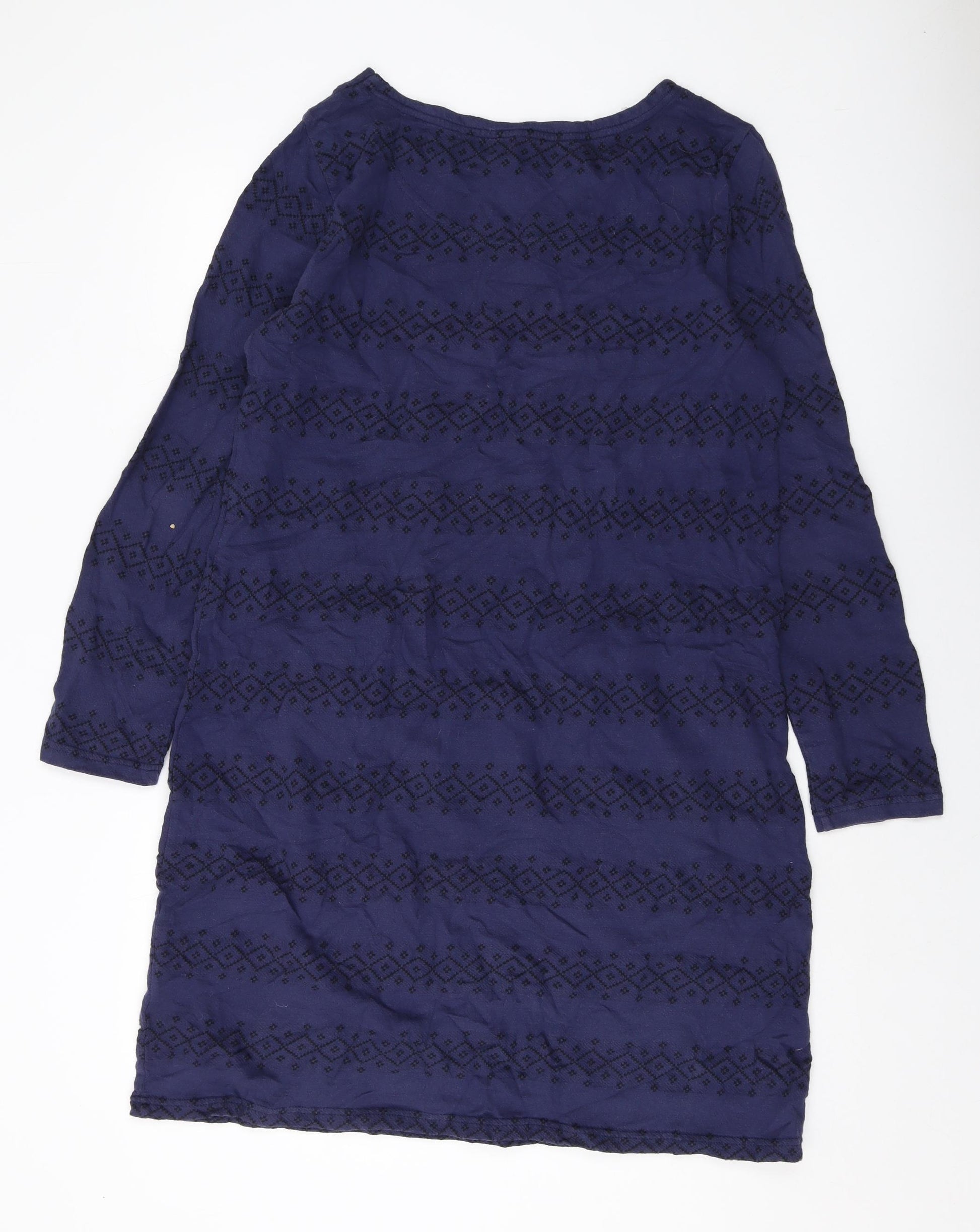 Womens Blue Geometric Cotton A-Line Size 16 Round Neck Pullover