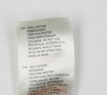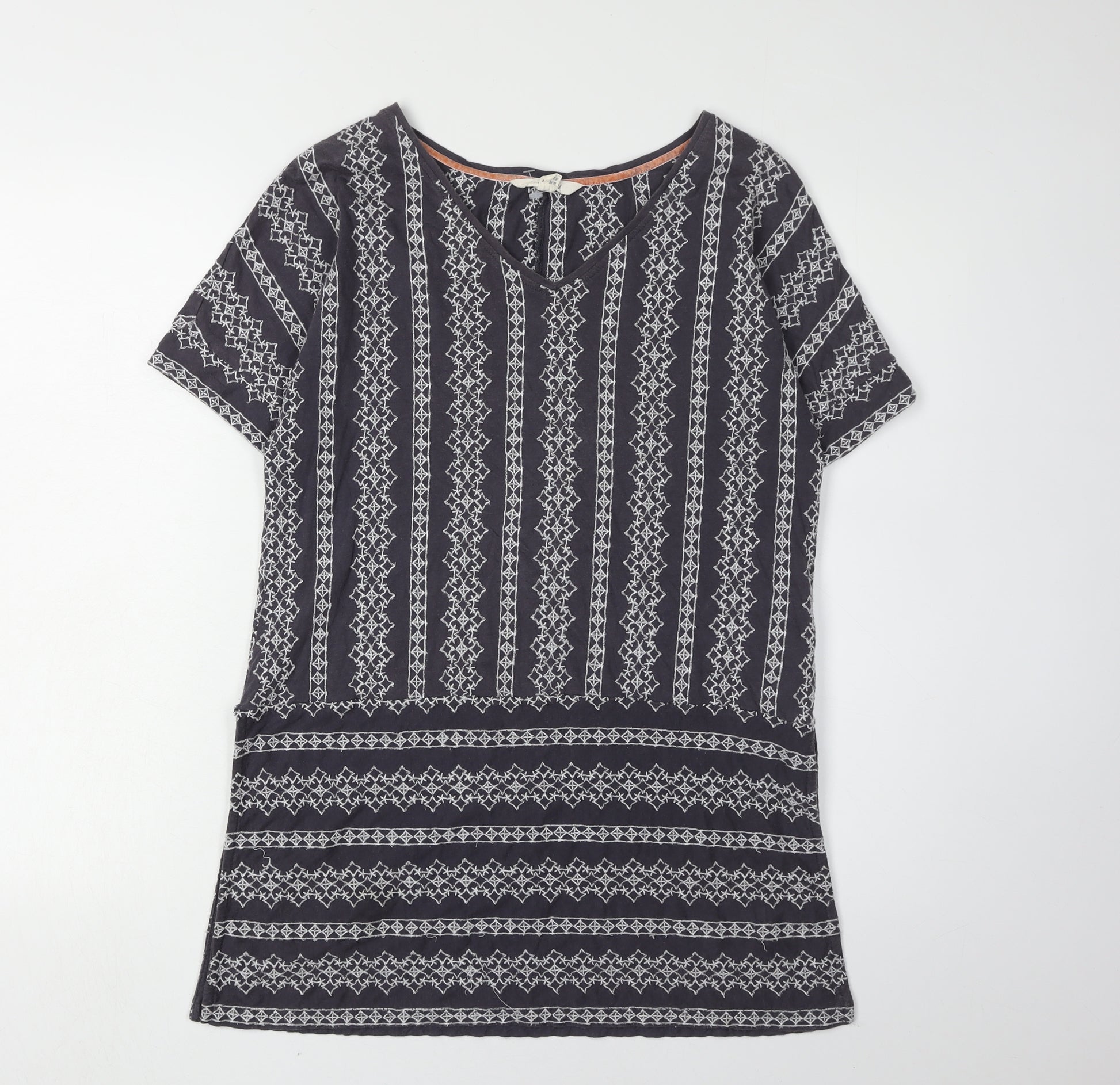Embrace style and comfort with the White Stuff Women's Blue Geometric Cotton T-Shirt, the perfect addition to your casual wardrobe. Designed with a chic geometric pattern in a versatile blue hue, this short sleeve T-shirt brings a touch of elegance to any look. The V-neckline adds a subtle hint of sophistication, making it ideal for laid-back weekends or casual outings. Crafted from 100% cotton, the top ensures total comfort and breathability, keeping you cool and at ease throughout your day. No need to worry about garment care, as this beautiful piece is machine washable for your convenience. Tailored to fit the modern woman, this size 8 top is suitable for multiple occasions, ranging from casual lunches to relaxed day trips. Its classic/fitted sleeve design offers ease of movement, optimising comfort without compromising on style. The White Stuff brand is synonymous with quality, ensuring that each piece is constructed to last. Featuring a brand new condition with original tags, this stylish T-shirt makes an excellent gift for yourself or a loved one. Don't miss the opportunity to elevate your wardrobe with this versatile piece, which pairs effortlessly with jeans, shorts, or skirts for a relaxed, yet effortlessly chic style. Get your hands on this fashionable top today, and enjoy a combination of premium quality and timeless design.