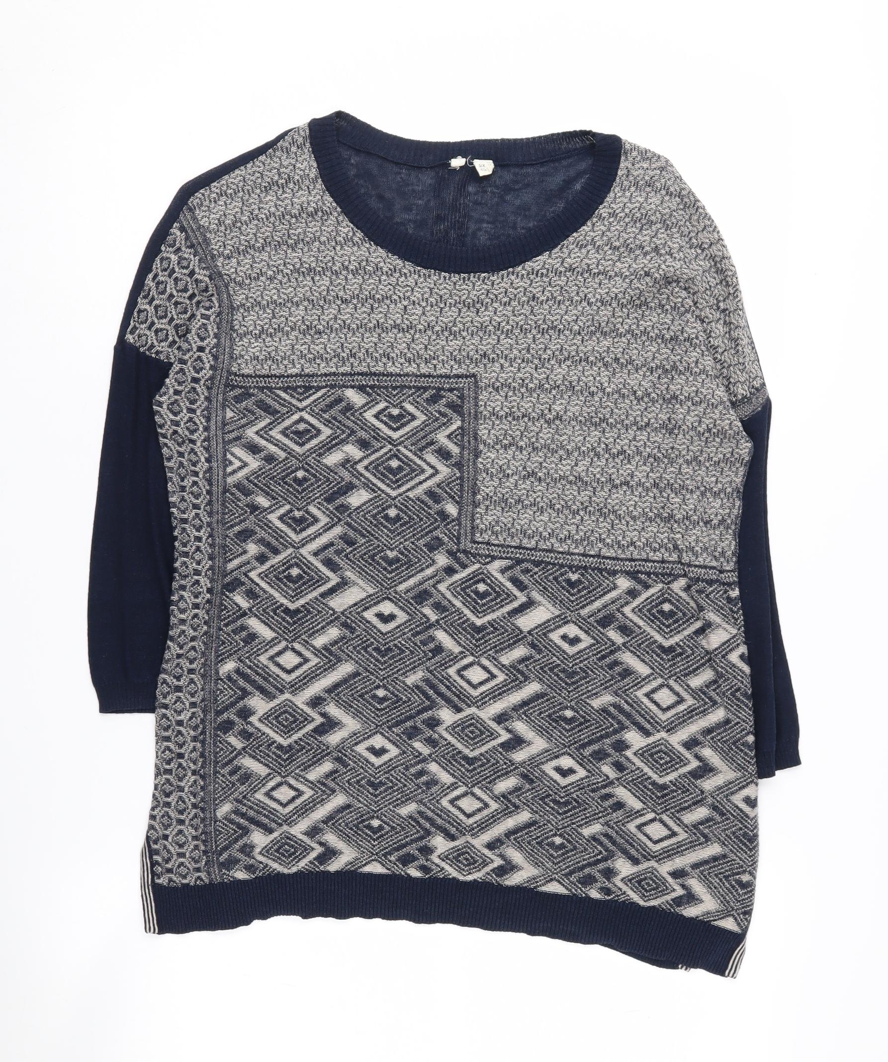 Women's Blue Geometric Pullover Jumper Size 10