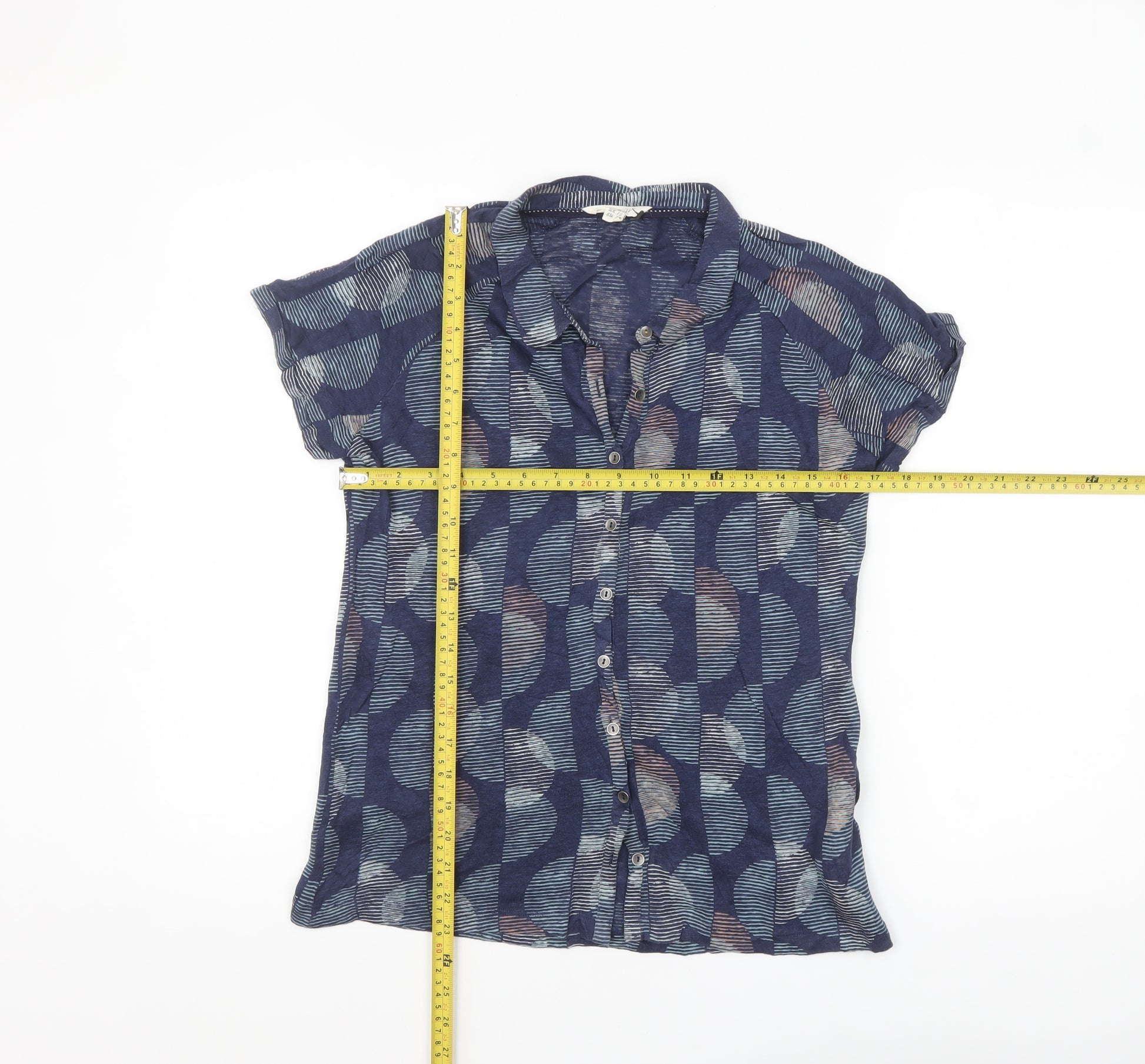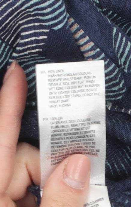 Women's Blue Linen Geometric Button-Up Shirt Size 10