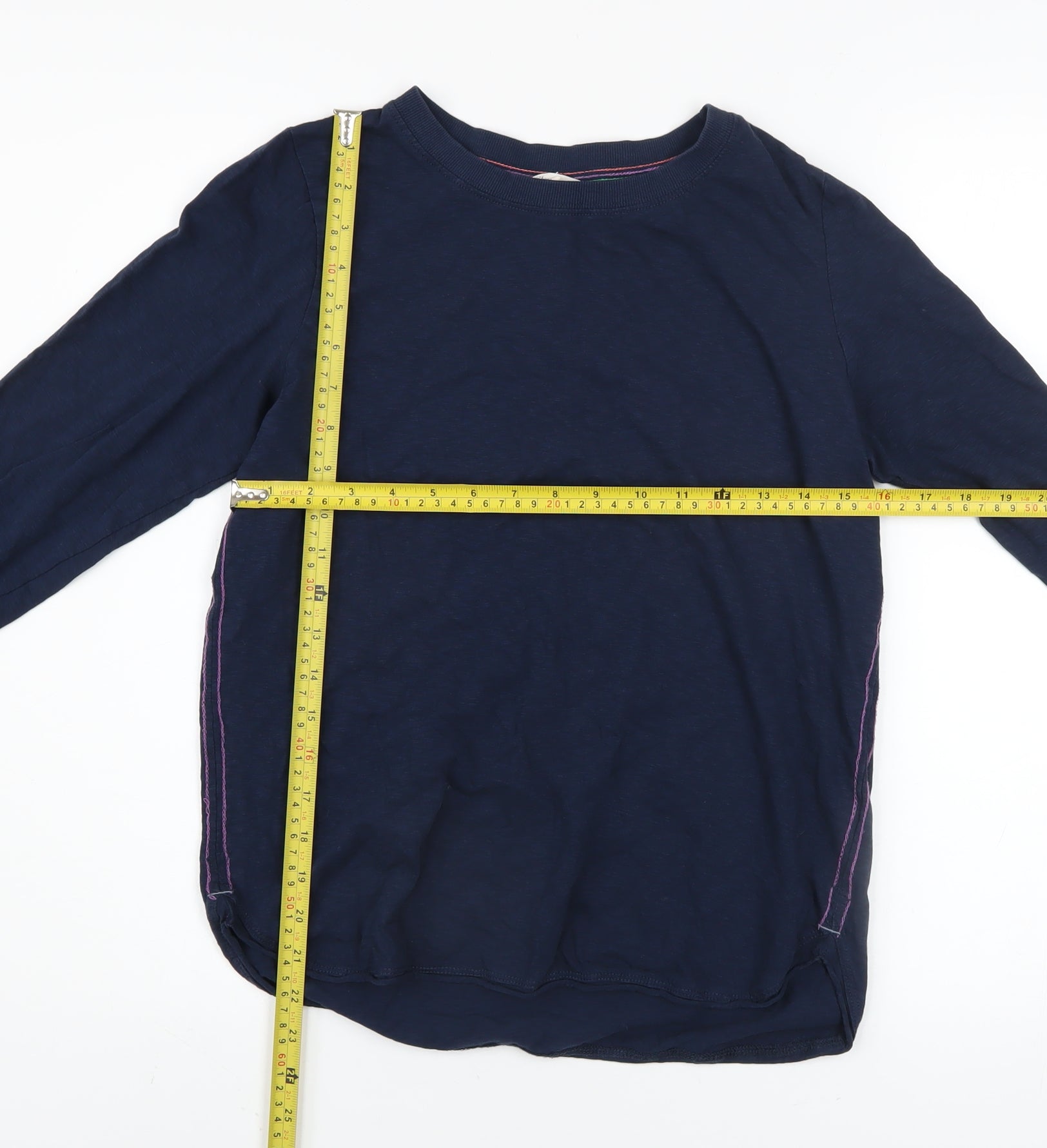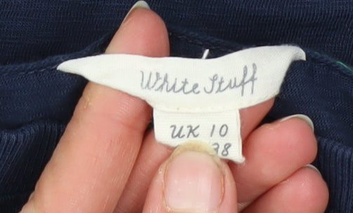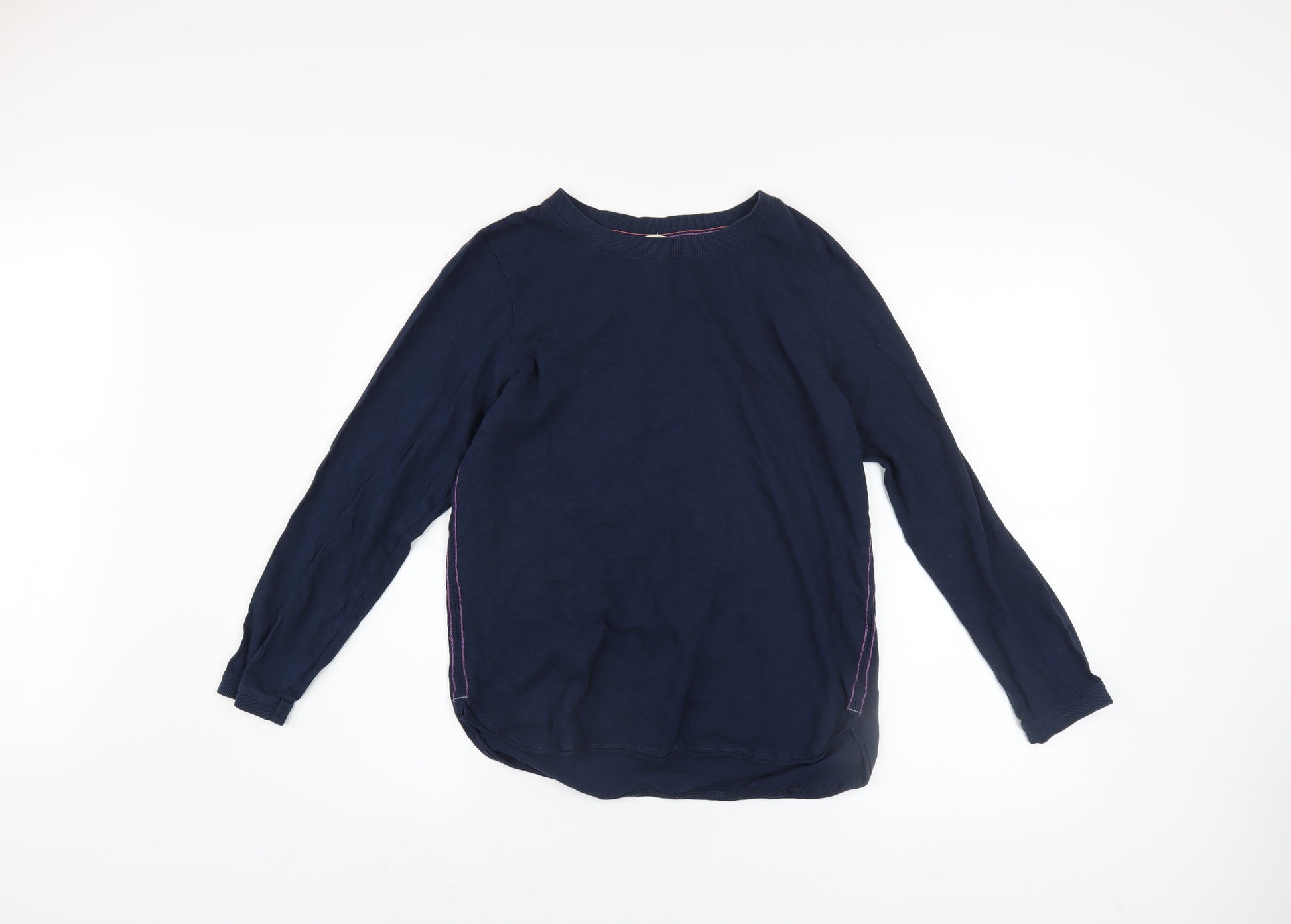 Stay effortlessly stylish and comfortable with this White Stuff women's blue long sleeve T-shirt, a wardrobe essential for year-round wear. Crafted from soft 100% cotton, this top offers natural breathability and lightweight comfort that’s perfect for layering or wearing on its own. Designed in a flattering regular fit with a classic crew neckline, it provides an easy, relaxed silhouette that works beautifully for casual outings, leisurely weekends, or everyday errands. The dark blue shade is timeless and versatile, pairing seamlessly with jeans, chinos, or skirts for a clean, understated look. The long sleeves make it suitable for transitional weather, while the soft jersey fabric ensures durability and long-lasting comfort. Thoughtful detailing such as subtle side stitching and a gently curved hem adds a touch of refinement to this simple basic. Ideal for spring, summer, and autumn, this pullover top is machine washable, making care practical and easy. Whether layered under a cardigan for cooler days or worn on its own in warmer seasons, this White Stuff T-shirt combines quality, comfort, and timeless design in one essential piece. The condition of this item is very good, showing light wear with no visible damages, ensuring excellent value and continued wearability. A classic everyday choice that embodies the relaxed yet polished spirit of the brand, perfect for those who value both comfort and style. Versatile, breathable, and easy to maintain, this long sleeve cotton top is a staple piece ready to elevate your casual collection.