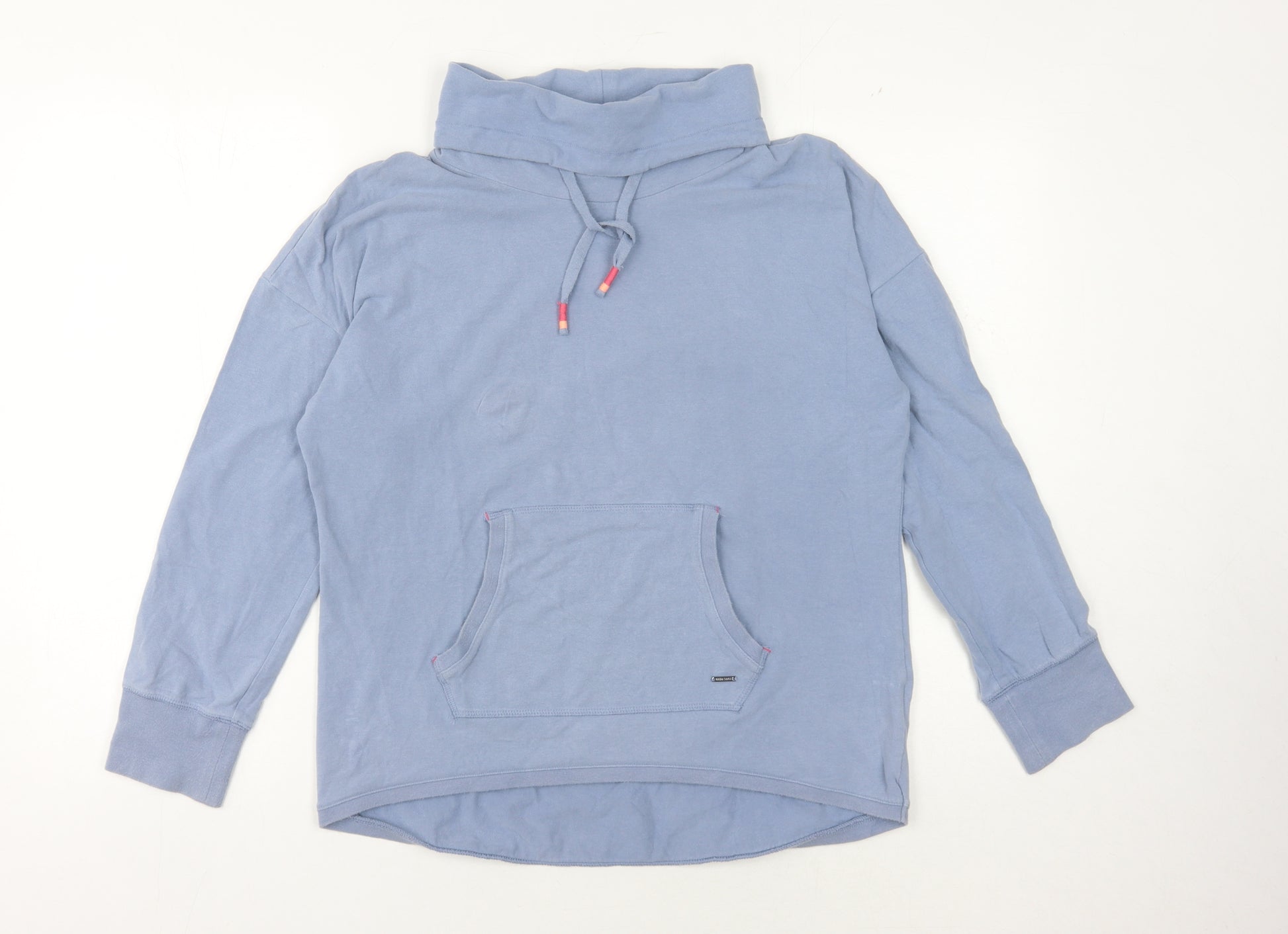 Upgrade your casual wardrobe with this White Stuff Women's Pullover Hoodie. Crafted in a calming blue hue, this hoodie combines style and comfort for a versatile wardrobe addition. Featuring a cowl neck design with a drawstring closure, this hoodie offers both style and practicality. Constructed from a cotton and elastane blend, the fabric ensures comfort with a hint of stretch, making it ideal for everyday wear. The regular fit and long sleeves make it a perfect choice for the Autumn and Spring seasons, providing just the right amount of warmth. The hoodie is also designed with a practical pocket for added convenience. Its machine washable nature guarantees ease of care, perfect for those who value practicality without compromising on style. With minimal wear and no original tags attached, this hoodie is in excellent condition, ready to be your new go-to garment for casual outings. Don't miss the chance to enhance your wardrobe with this stylish and comfortable piece.