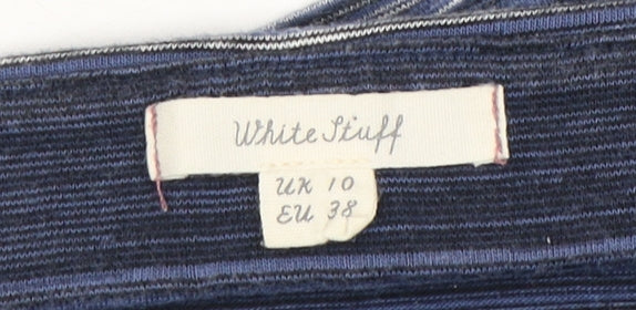 Elevate your wardrobe with this lovely White Stuff Women's Pencil Skirt. This chic blue striped skirt is crafted from a blend of 99% Cotton and 1% Elastane, ensuring both comfort and durability. The fabric has a jersey texture that feels soft against the skin, making it a versatile piece suitable for any season. The skirt features a timeless striped pattern in navy blue hues, perfect for creating a smart casual look. Whether you’re heading to work or enjoying a leisurely day out, this skirt can be paired effortlessly with a variety of tops. Designed for the modern woman, its straight and pencil style offers a flattering silhouette. Although it does not come with its original tags, this skirt is in excellent condition with no visible signs of wear or damage. Practical and stylish, this piece is also easy to care for, being machine washable. A great addition to any closet, this White Stuff skirt is sure to become a staple in your fashion collection. Priced at an affordable rate, it’s a must-have for those who appreciate quality and style. Don’t miss the opportunity to purchase this beautiful skirt.
