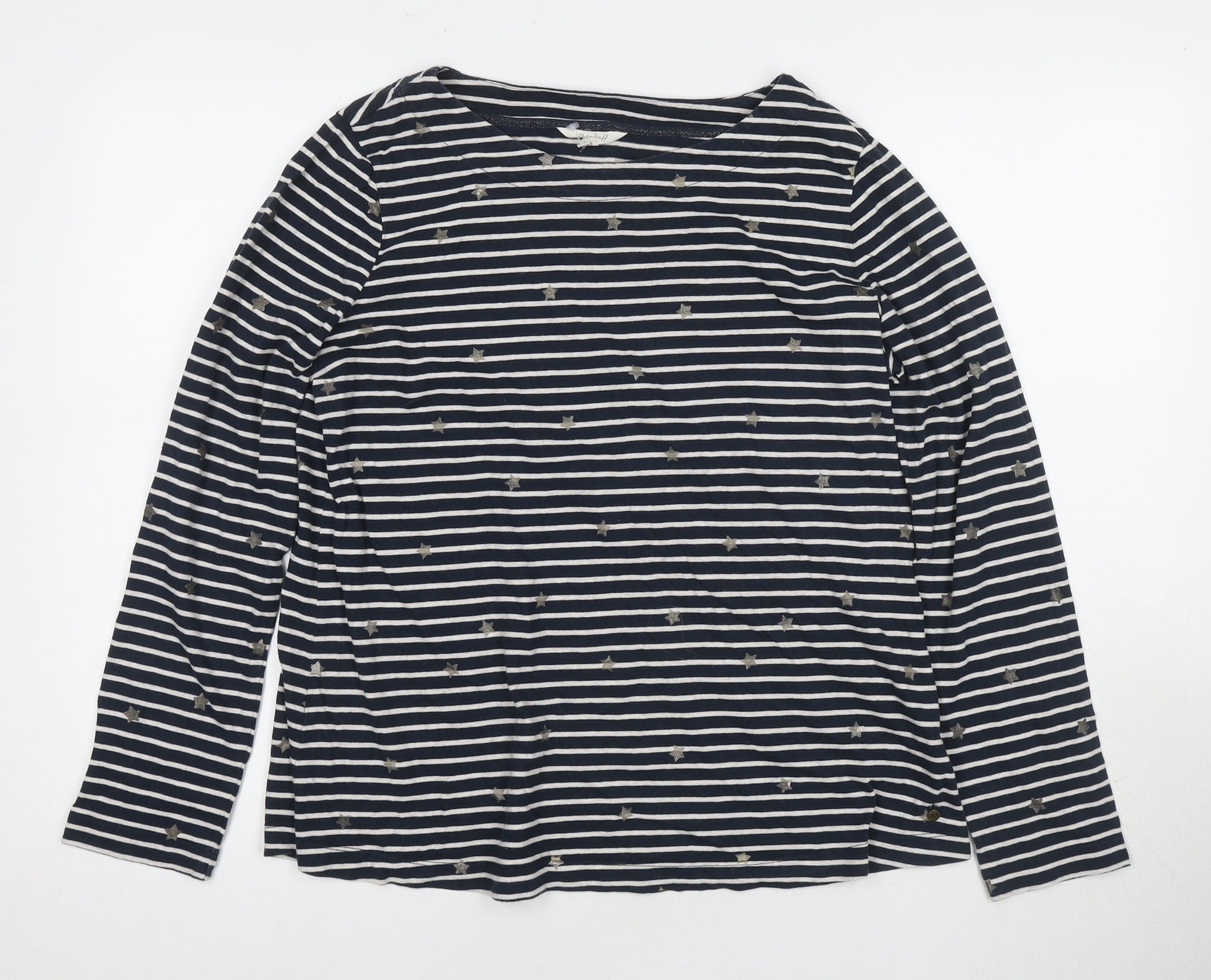 Womens Blue Striped Cotton Basic T-Shirt Size 16 Round Neck