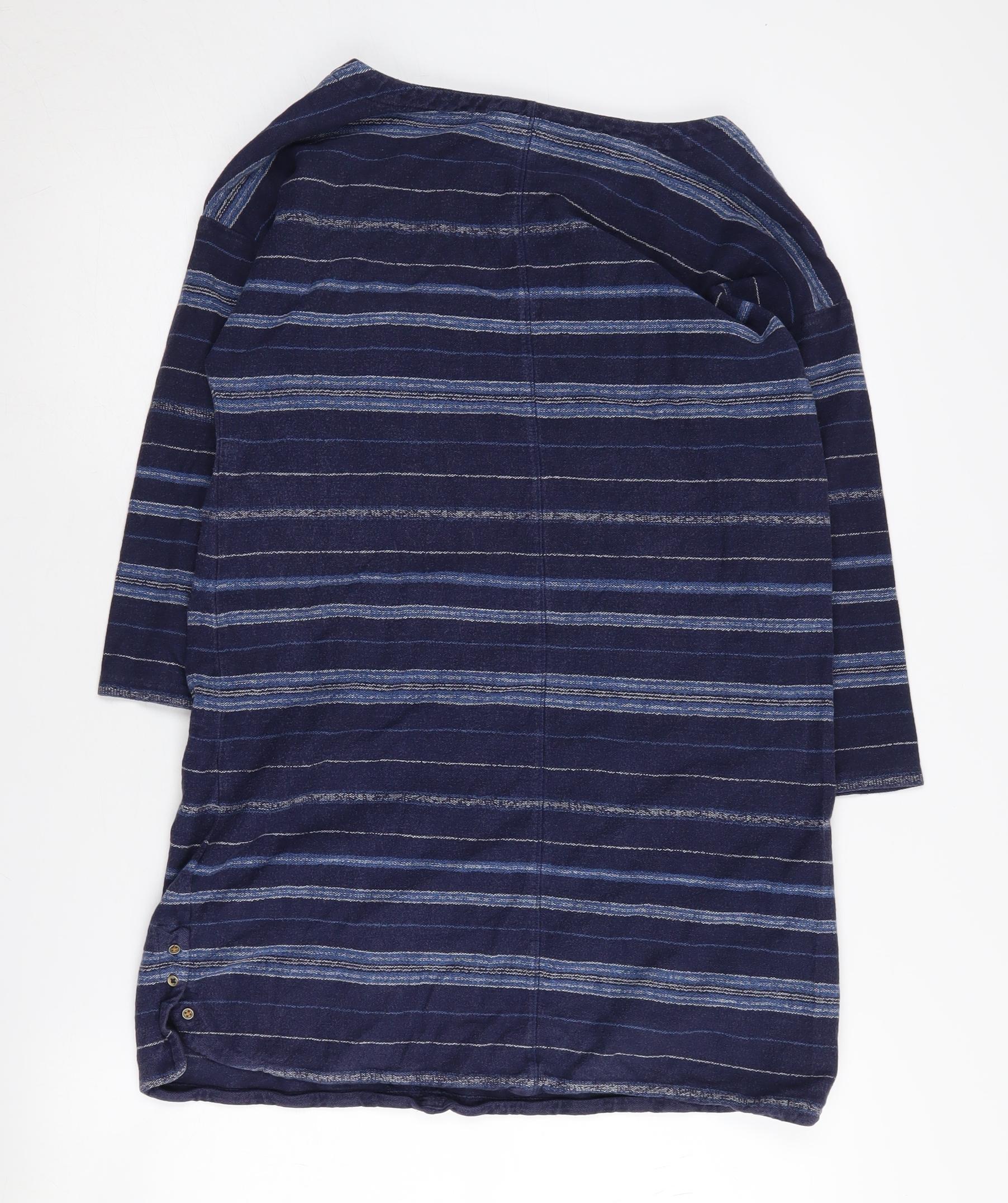 Discover the charming casual elegance of this White Stuff tunic. Crafted from 100% cotton, this blue striped tunic ensures all-day comfort with its breathable fabric. Perfect for the woman who values style and ease, this piece features a round neckline and 3/4 length sleeves, making it a versatile addition to your wardrobe. The accent buttons add a unique touch, ensuring you stand out in any setting. Ideal for casual occasions, it offers a relaxed fit that flatters every body shape. Easy to care for and machine washable, this tunic blends style with convenience. Whether you're dressing up for a day out or keeping it simple at home, it's a go-to choice for a fresh, stylish look.