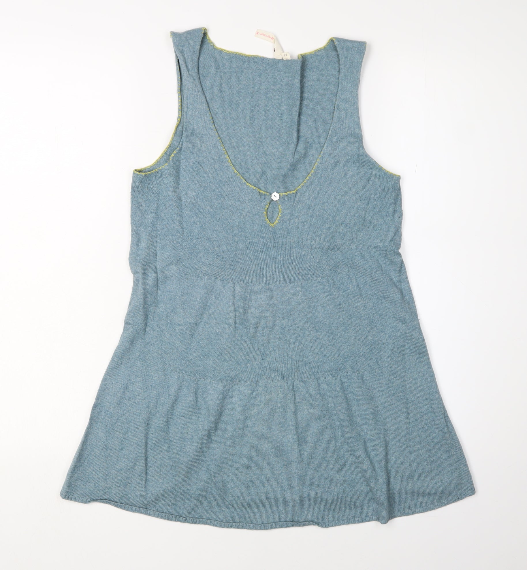 Step into style with this elegant White Stuff women's tank top in a charming blue shade. Perfect for casual occasions, this top embodies both comfort and fashion. Designed with a regular fit, it features a scoop neckline that adds a flattering touch. The sleeveless design is ideal for layering or wearing alone, making it versatile for both spring and autumn seasons.Crafted from a rich blend of materials including viscose, nylon, cotton, lambswool, angora, and cashmere, this top offers a soft and luxurious feel. The solid knit fabric ensures durability and a smooth texture against the skin, while the subtle button accent adds an ideal finishing touch.Whether you're dressing up or keeping it laid-back, this tank top aligns with your style aspirations. Pair it with jeans for a relaxed day out, or add a blazer for a chic office look. With its hand wash care instructions, maintaining this garment is both easy and hassle-free.Embrace the essence of comfort without compromising on style, and make this tank top a staple in your wardrobe today.