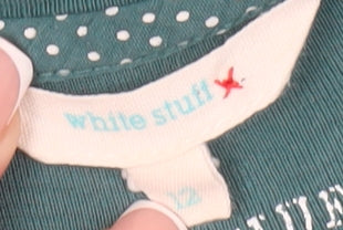 Discover comfort and effortless style with this White Stuff Women's Green Top crafted to perfection for your everyday needs. Featuring a simple yet chic boat neckline and long sleeves, this top offers a solid green hue that effortlessly complements any casual ensemble. The top is made entirely of cotton, ensuring breathability and comfort throughout the day. Designed for women, it fits a regular size 12, making it perfect for everyday wear. While the garment has slight wear visible, it remains in excellent condition, ready for new adventures. This top is machine washable for easy care, allowing you to focus more on styling it rather than maintaining it. Perfect for those who love classic pieces with a touch of elegance.
