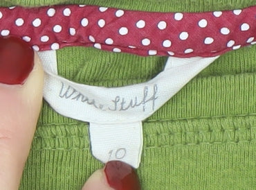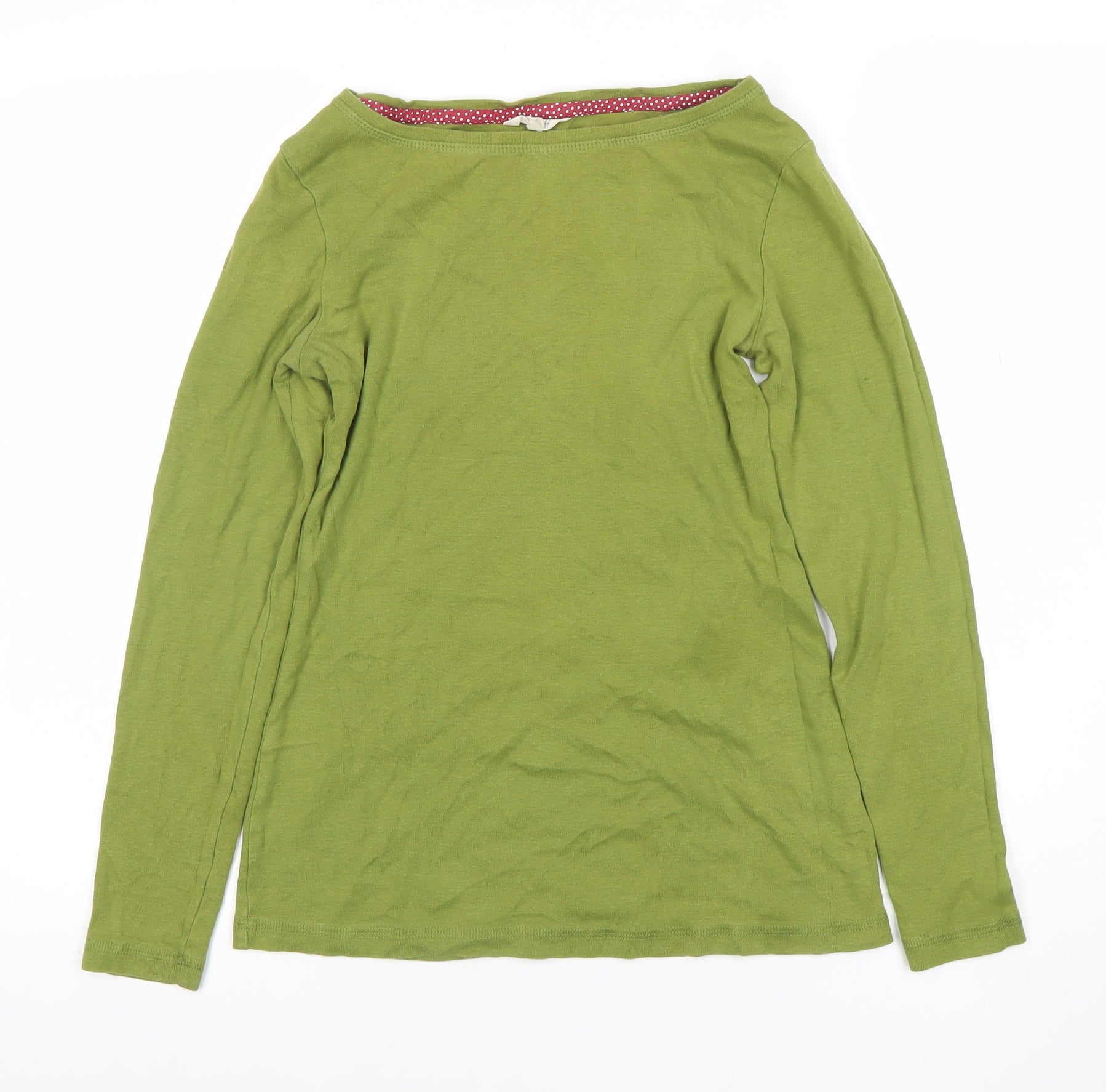 Add a touch of casual comfort to your wardrobe with this lovely green long sleeve T‑shirt from White Stuff. Crafted from 100% cotton, it offers a soft and breathable fit that’s perfect for all‑day wear. The jersey fabric drapes nicely over the body, while the classic boat neckline adds a subtle feminine detail. Its long sleeves make it ideal for layering under cardigans or jackets during cooler months, but it’s equally suitable for wearing on its own in milder weather.The top is finished in a versatile solid green shade, easy to pair with jeans, chinos or skirts for a relaxed everyday look. Designed in a regular fit, it provides comfortable movement and a timeless silhouette that works well for casual days, weekend outings, or laid‑back office environments. With its simple pullover style and high quality cotton, it promises both durability and ease of care — simply machine washable for effortless maintenance.This White Stuff women’s top captures the brand’s well‑loved blend of comfort and understated charm. Whether worn as a standalone piece or layered, it delivers a natural, easy feel that complements a variety of outfits. Its pure cotton construction ensures breathability, making it perfect across seasons — ideal for autumnal walks, spring errands, or as a cosy underlayer in winter. Light signs of gentle wear are noted but overall in excellent condition, offering great value for a quality brand. Practical, stylish, and sustainable, this long sleeve top brings dependable comfort and versatile style to your wardrobe essentials.