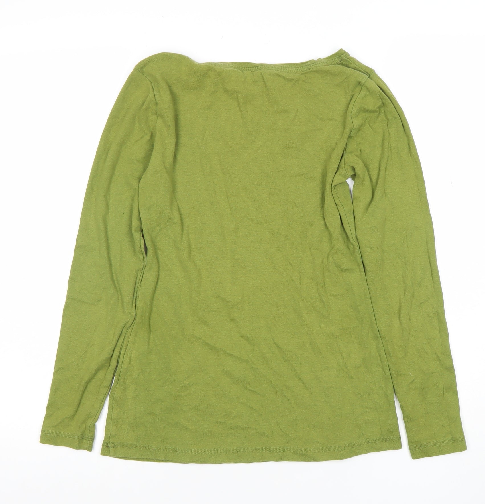 Women's Green Long Sleeve Cotton T-Shirt Size 10