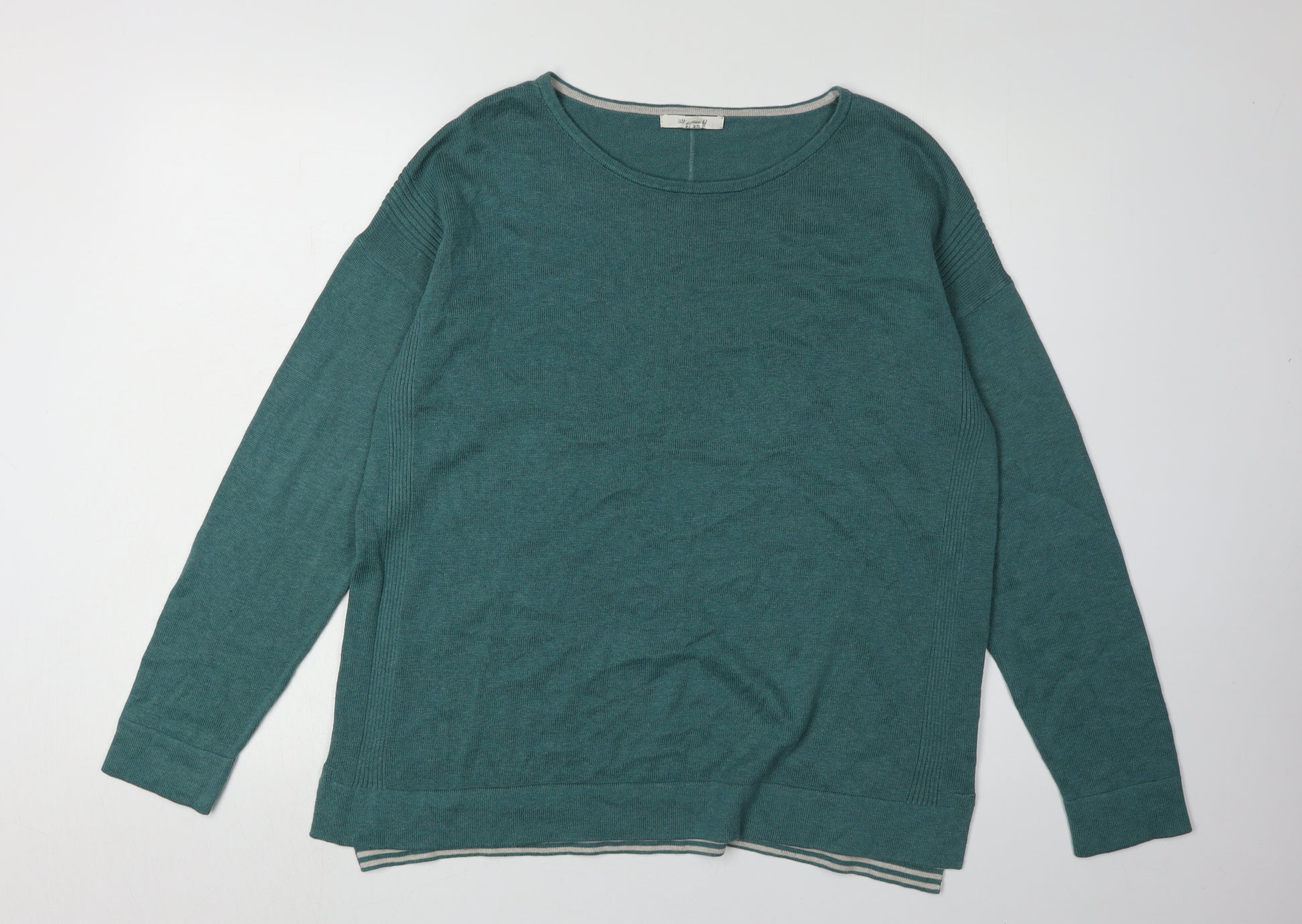 White Stuff Women Blue Striped Cotton Merino Jumper Size 14