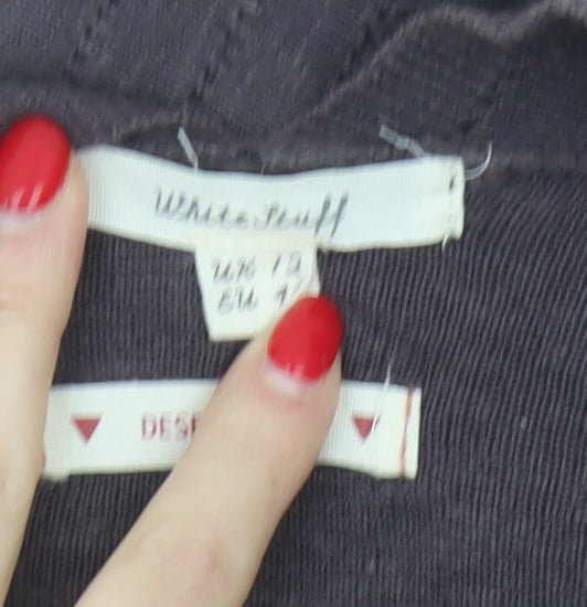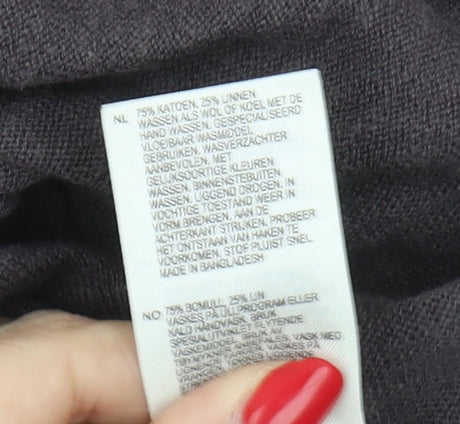 Discover the elegance and versatility of this White Stuff cardigan. Crafted from a blend of 75% cotton and 25% linen, it offers a breathable and comfortable fit. The soothing grey colour makes it a perfect match for various outfits, whether you're dressing up for a casual day out or layering for an office look. Designed with long sleeves and featuring a regular fit, this cardigan is suitable for every woman looking to add a dash of sophistication to her wardrobe. While the lack of pattern adds simplicity, the fine knit fabric enhances its overall style, providing a neat and tidy appearance. Although pre-owned, it's in excellent condition with little to no signs of wear, making it a great addition to your collection. Hand wash only to maintain its pristine look over time. Enhance your styling options with this timeless piece that's ideal for any season and occasion.