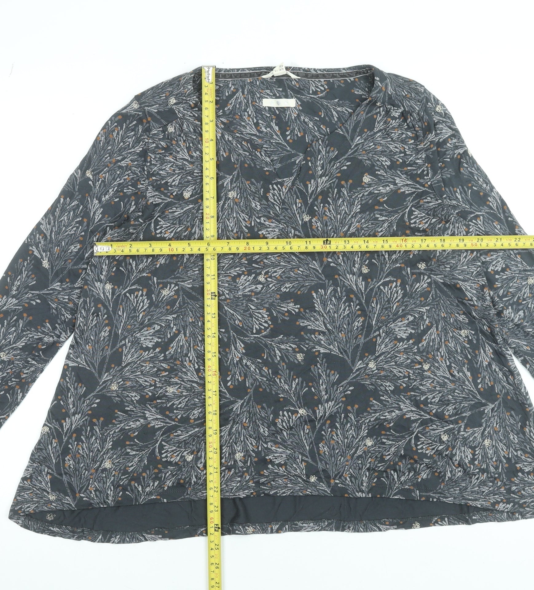 Women's Grey Floral Viscose Tunic Blouse UK 12