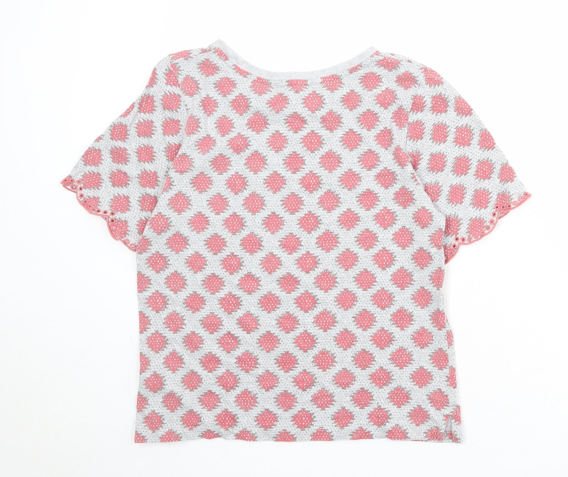 Womens Grey Geometric Cotton Basic T-Shirt Size 10 Round Neck