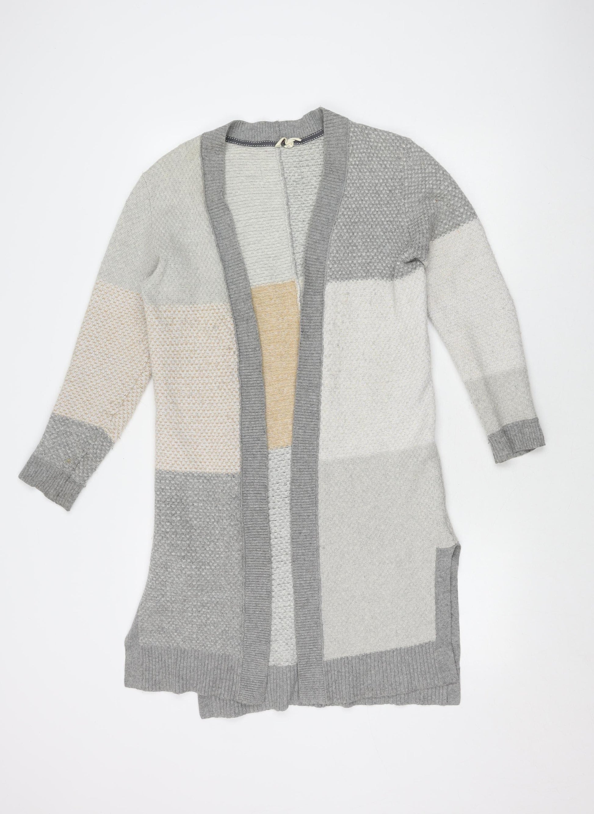 Women's Grey Open Front Cardigan, Size 12, Cotton Wool Blend