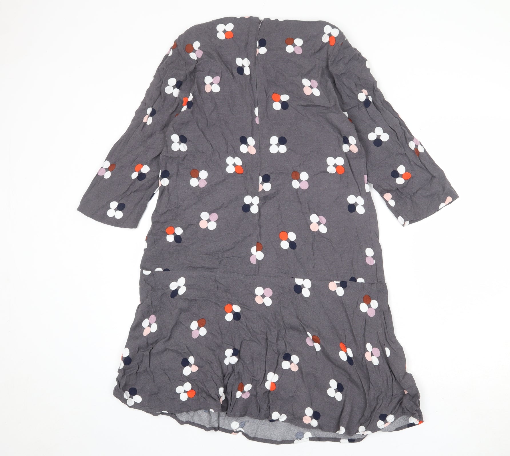 Womens Grey Polka Dot Viscose A-Line Size 12 Round Neck Zip