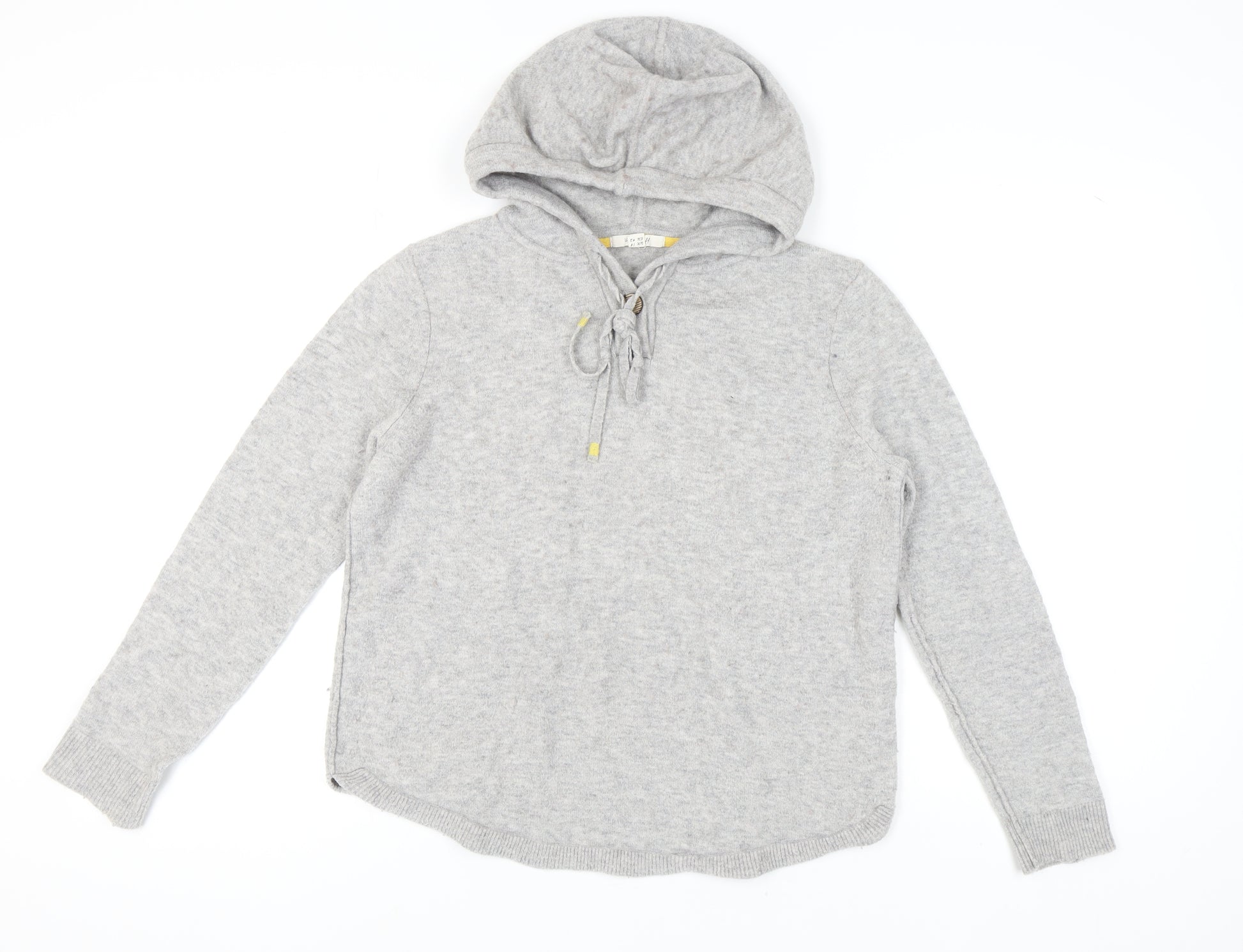 Discover comfort and style with this White Stuff Women's Pullover Hoodie Jumper. Crafted for casual elegance, this piece is perfect for autumn and winter outings. Tailored from a blend of wool, merino wool, and elastane, it offers warmth and flexibility. The hooded neckline provides extra comfort and a chic touch to your wardrobe, while the long sleeves ensure optimal coverage. With its timeless grey hue and regular fit, this jumper seamlessly pairs with jeans or leggings for a relaxed yet stylish ensemble. Gently used and in excellent condition, this jumper showcases the quality and craftsmanship White Stuff is renowned for. Ideal for casual occasions, it is a versatile addition to your closet that provides both style and functionality. The knit fabric enhances this jumper's appeal, ensuring a cosy feel on chilly days. Whether dressing up for a casual daytime look or relaxing at home, this pullover is your go-to choice for an effortlessly chic appearance.