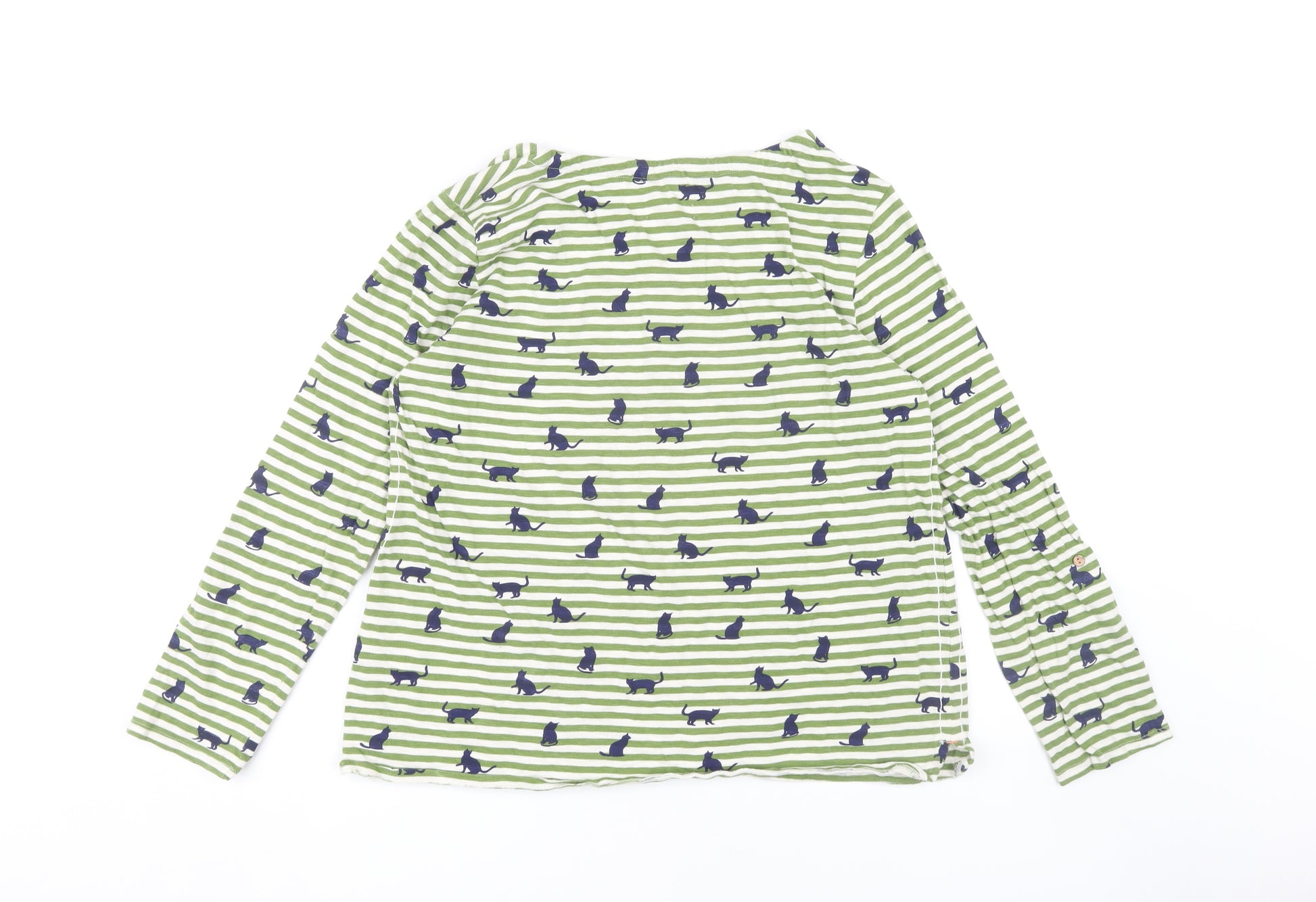 This delightful White Stuff women's T-shirt is a fantastic addition to any wardrobe. Crafted from 100% cotton, it features a multicoloured striped design adorned with charming animal motifs, perfect for adding a playful touch to your outfit. Its regular fit and long sleeves provide comfort, while the pullover style and round neckline offer ease and style. Ideal for casual occasions, this T-shirt is versatile for both spring and autumn wear. The top is machine washable, ensuring easy care and maintenance. With no visible signs of wear, it remains in excellent condition, ready to be paired with your favourite jeans or leggings for a relaxed, comfortable look.