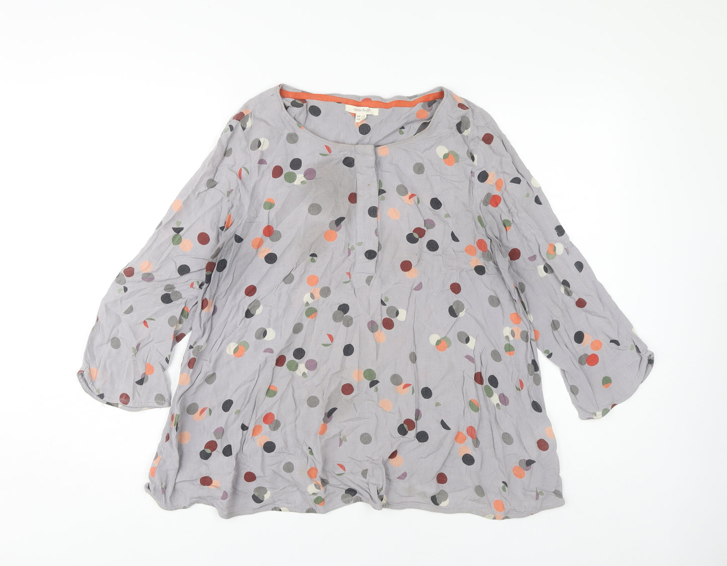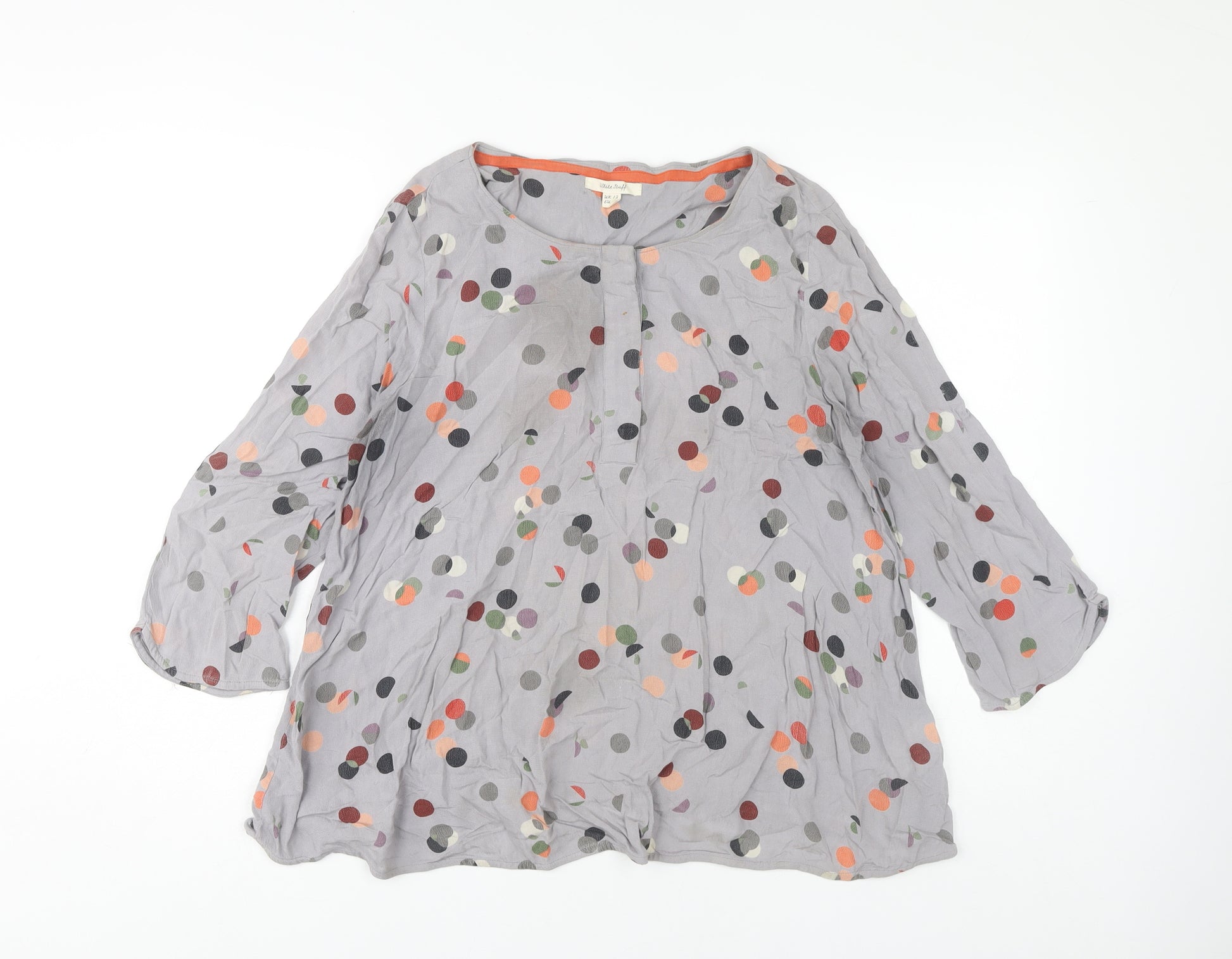 This delightful blouse from White Stuff is a must-have addition to any wardrobe, offering a charming blend of style and comfort. Crafted from 100% viscose, this blouse is soft and lightweight, making it perfect for everyday wear. The playful polka dot pattern in a multicoloured palette adds a splash of fun to any outfit, while the relaxed fit ensures comfort throughout the day. The 3/4 sleeve length and round neckline contribute to its versatile appeal, allowing you to pair this blouse with jeans for a casual look or dress it up with tailored trousers and accessories for a more polished ensemble. Designed with women in mind, this regular size 12 top is perfect for those who value both style and practicality. Please note that the blouse is in excellent condition, with no visible flaws and ready to wear. Ideal for any occasion, whether it’s a day out with friends or a casual day at work, this blouse offers effortless chic style. Hand wash only to maintain its quality and longevity. Don't miss out on adding this wardrobe staple to your collection at an affordable price.