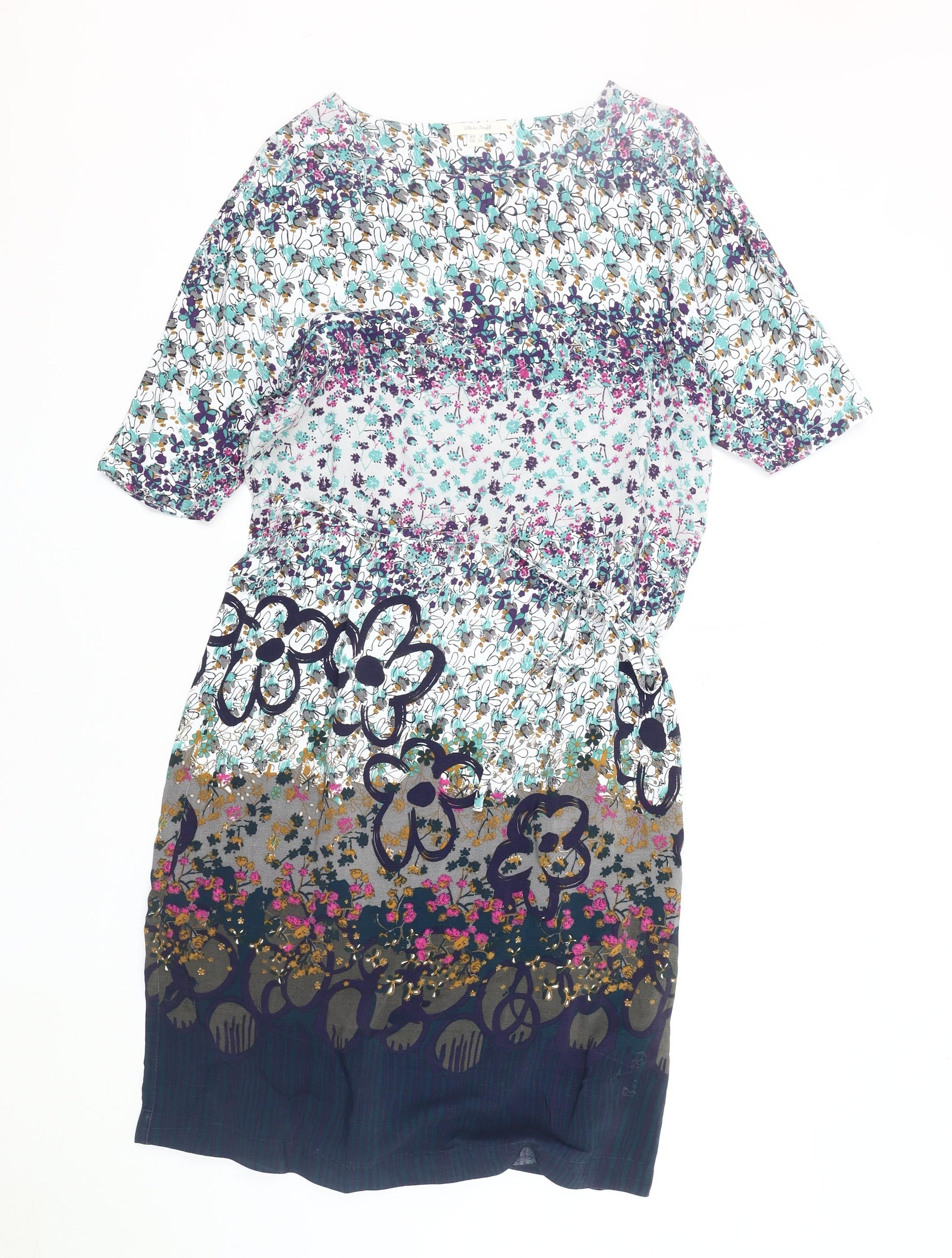 Marks and Spencer Womens Multicoloured Floral Viscose A-Line Size 8 Round Neck Zip