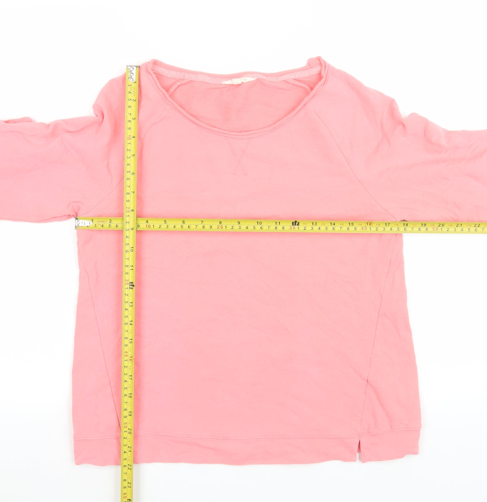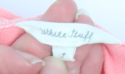 Add a touch of laid-back charm to your everyday wardrobe with this lovely pink long sleeve T-shirt from White Stuff. Crafted from a soft jersey blend of 94% cotton and 6% elastane, it provides comfort, breathability, and a hint of stretch for an easy, flattering fit that moves with you. Perfect for layering or wearing on its own, this versatile tee is ideal for casual outings, weekend relaxation, or travel days. Designed in a cheerful solid pink hue, it offers a cheerful pop of colour to pair effortlessly with jeans, skirts, or shorts for a fresh and feminine look. The relaxed raglan sleeve design ensures ease of movement and enhances its casual appeal, while the classic crew neckline keeps it timeless and flattering. Made from high-quality jersey fabric, this top balances softness with durability, ensuring it remains a staple for seasons to come. Suitable for spring, summer, and autumn, it can be layered with lightweight cardigans or denim jackets when the temperature cools. A breathable and machine washable piece, it’s easy to care for and ideal for daily wear. In excellent pre-loved condition with only minor signs of light wear, this piece is ready for a new home where it will remain a go-to essential. Whether you’re styling it for a coffee catch-up, a leisurely walk, or lounging at home, this White Stuff long sleeve T-shirt provides timeless comfort and style that never goes out of fashion. Combine practical wearability with a touch of colourful charm in this wardrobe must-have today.