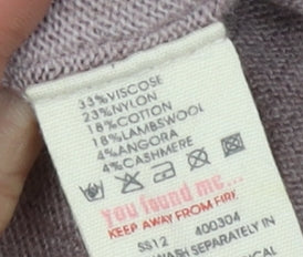 Discover the perfect blend of style and comfort with this exquisite White Stuff Women's Cardigan. Crafted in a soothing pink hue, this cardigan is a versatile wardrobe staple that seamlessly complements your casual outfits. Made from a luxurious fabric mix, including viscose, nylon, cotton, lambswool, angora, and cashmere, it offers a soft and cosy feel against the skin. Featuring a classic cardigan style with long sleeves and a knit texture, it is perfect for layering in any season. The absence of patterns ensures that it easily pairs with various tops and accessories, allowing you to achieve different looks effortlessly. Whether you're heading out for a casual day or lounging at home, this cardigan offers comfort and elegance. Hand wash only for long-lasting beauty.