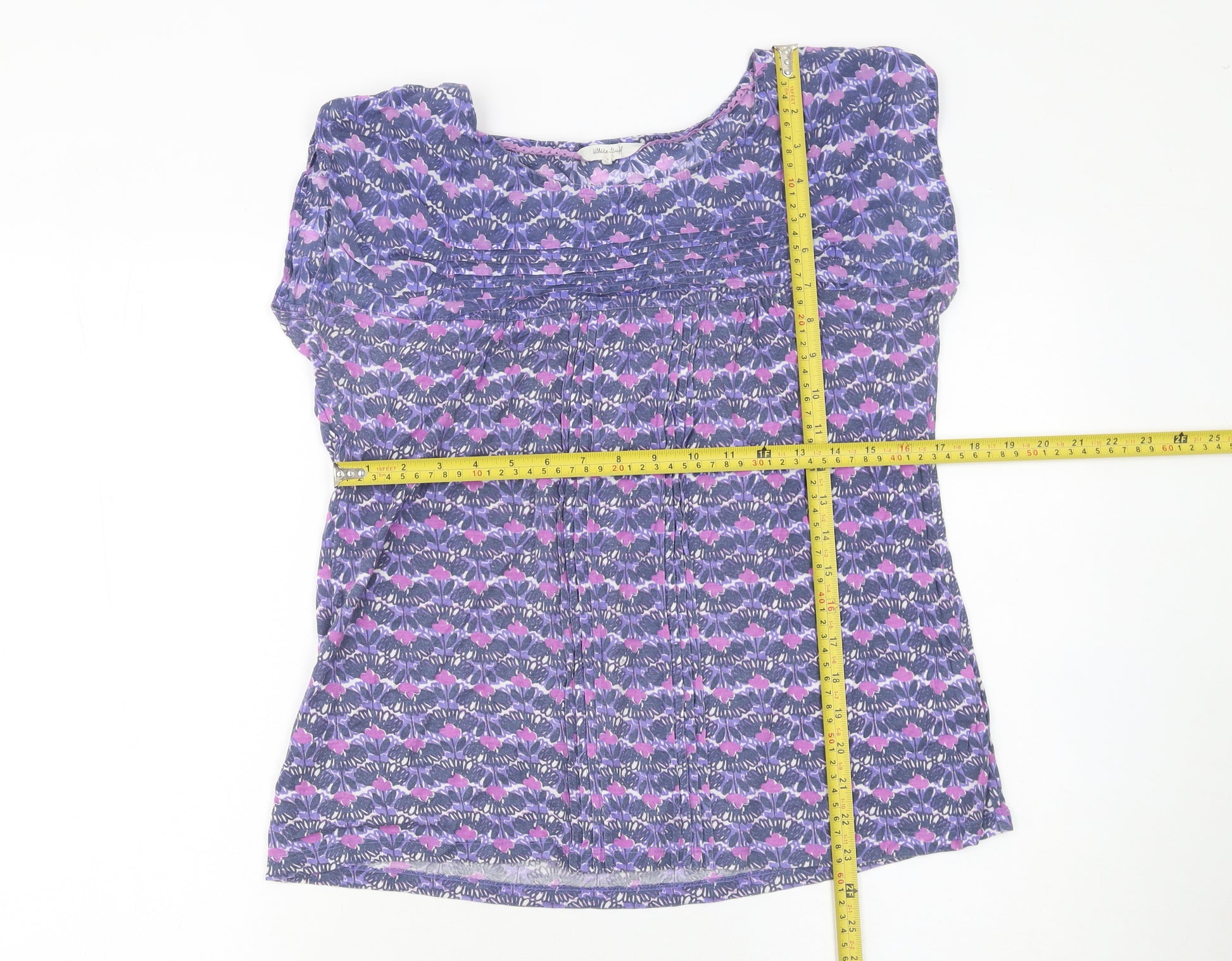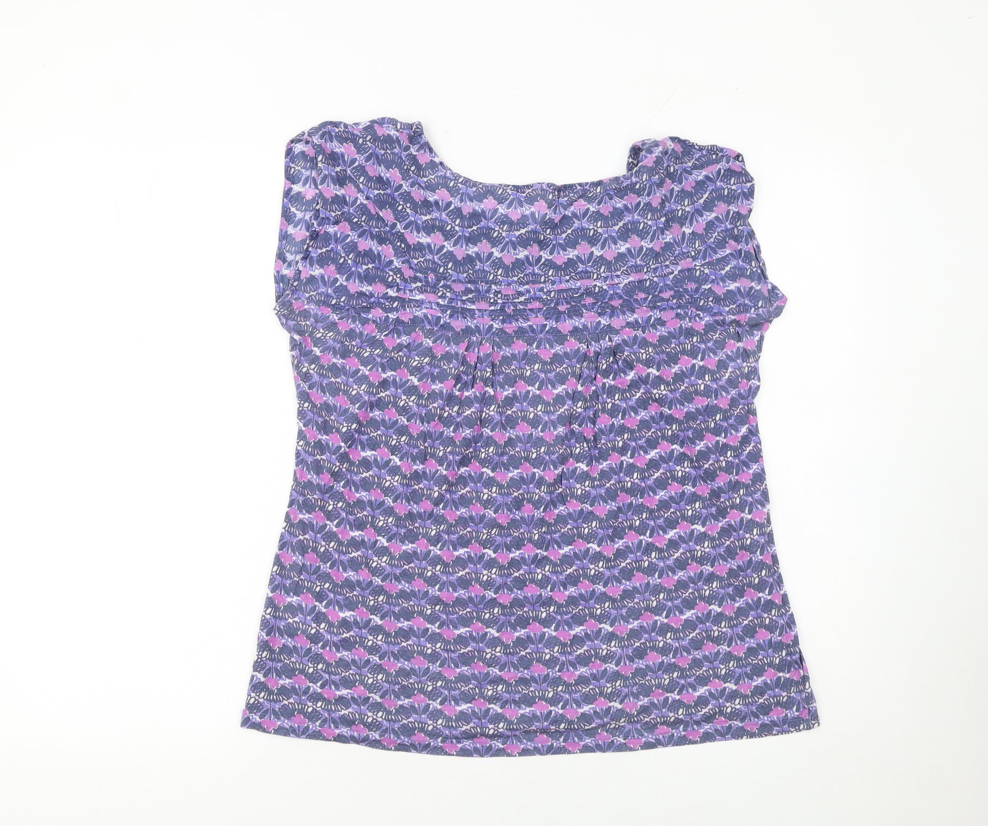 Women's Purple Floral Tunic Blouse Size 12 Short Sleeve