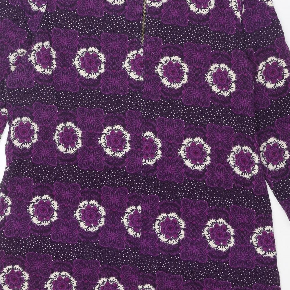 Womens Purple Geometric Cotton Shift Size 16 Boat Neck Zip