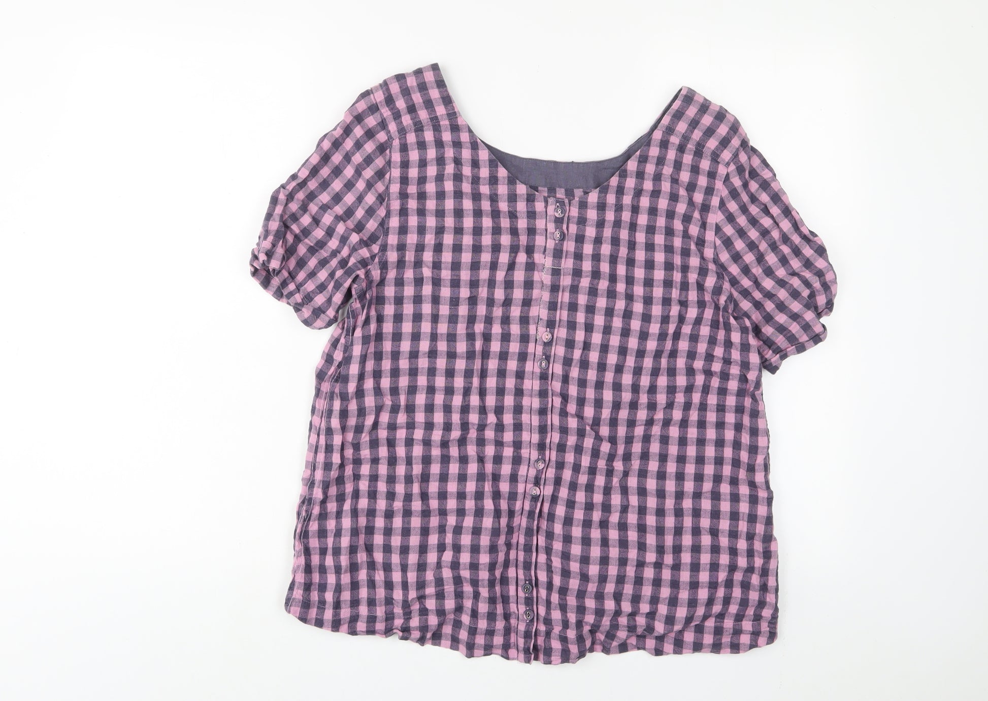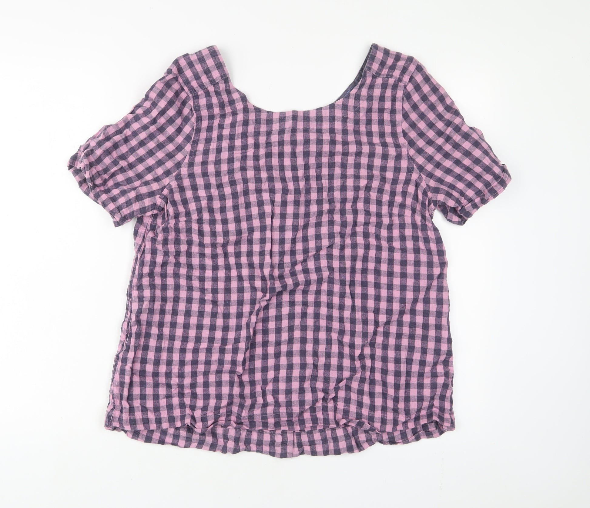 Womens Purple Plaid Cotton Basic T-Shirt Size 12 Crew Neck