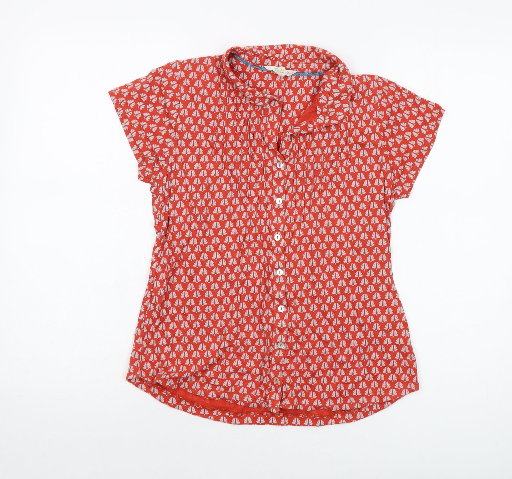 Womens Red Geometric Cotton Basic Button-Up Size 10 Collared