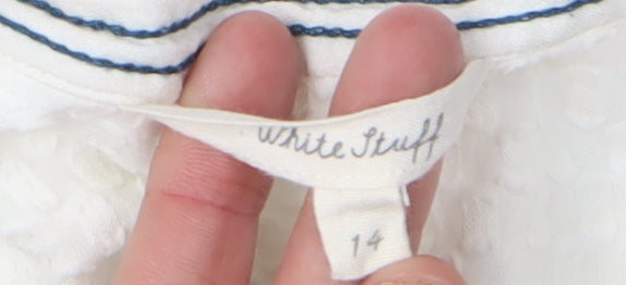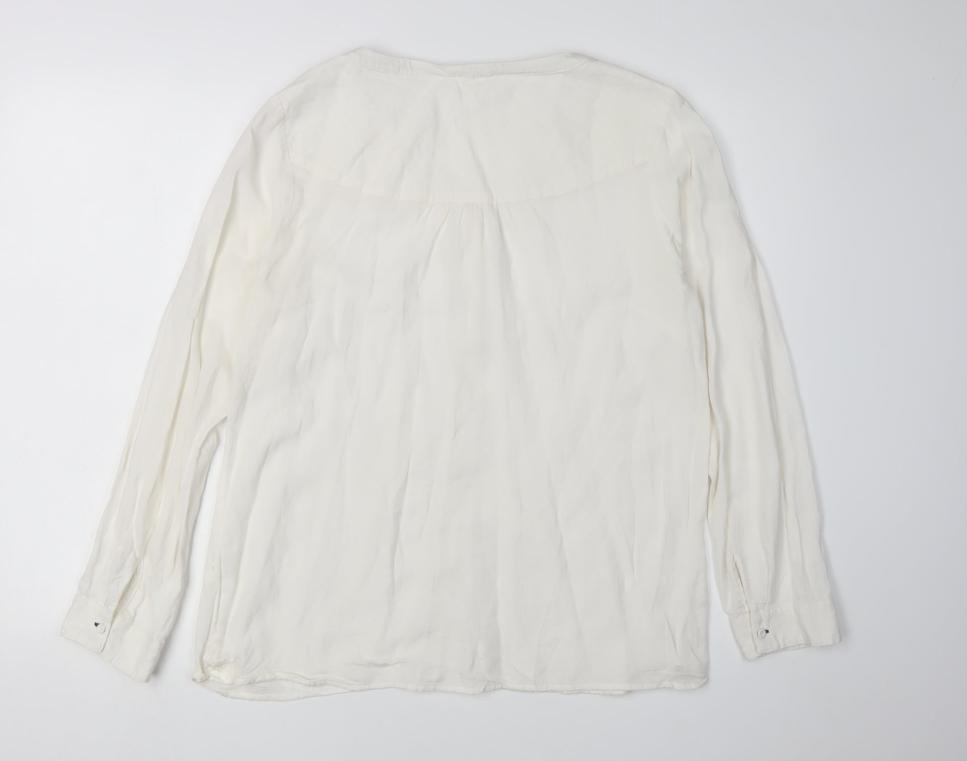 Elevate your wardrobe with this stylish White Stuff blouse, perfect for the discerning woman looking for a mix of comfort and elegance. Crafted in a versatile white hue, this long sleeve blouse is ideal for spring and summer outings or weekend brunch with friends. Featuring a classic V-neckline and button accents, it adds a touch of sophistication to any casual ensemble. Designed for women, this solid patterned blouse embraces simplicity that harmonizes with a variety of accessories for effortlessly chic styling. Tailored in a regular UK size 14, it offers a relaxed fit catered to flatter a range of body types. Whether paired with jeans or a skirt, this blouse promises both comfort and style, making it a versatile addition to your clothing collection. Experience the understated elegance of White Stuff today.