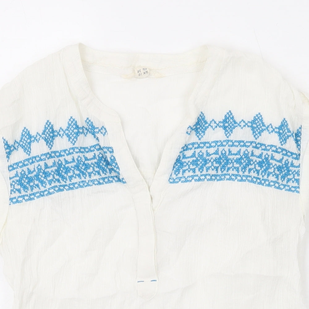 Womens White Geometric Cotton Basic Blouse Size 10 V-Neck
