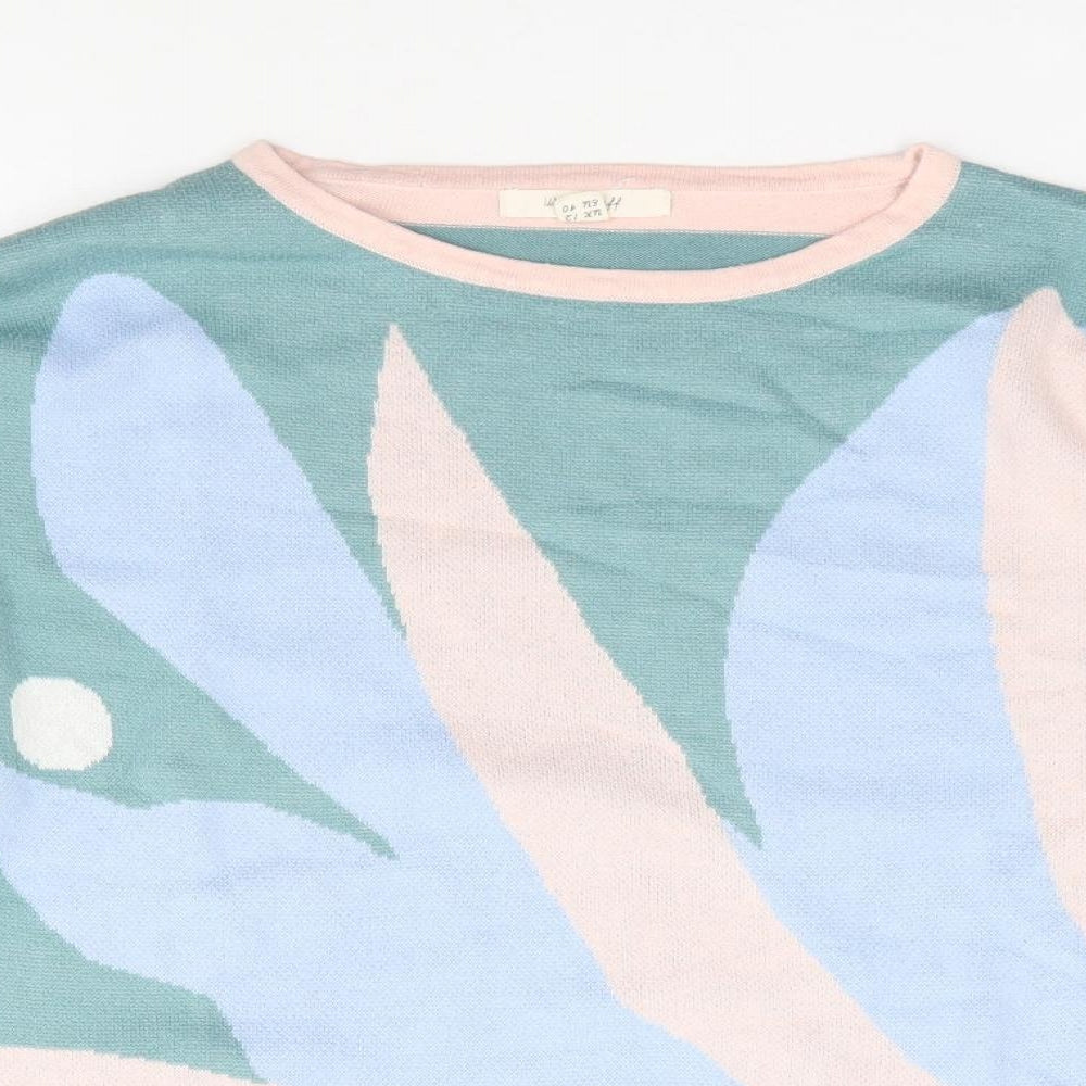 Womens Multicoloured Round Neck Floral 100% Cotton Pullover Jumper Size 12