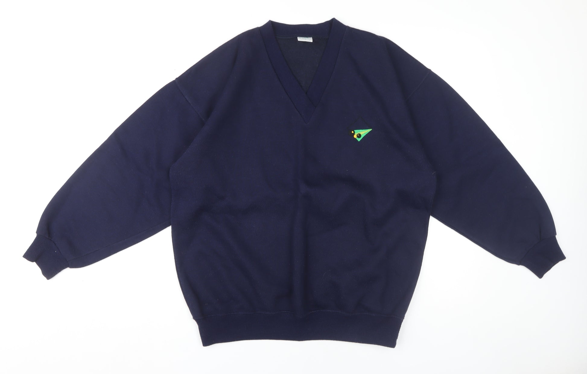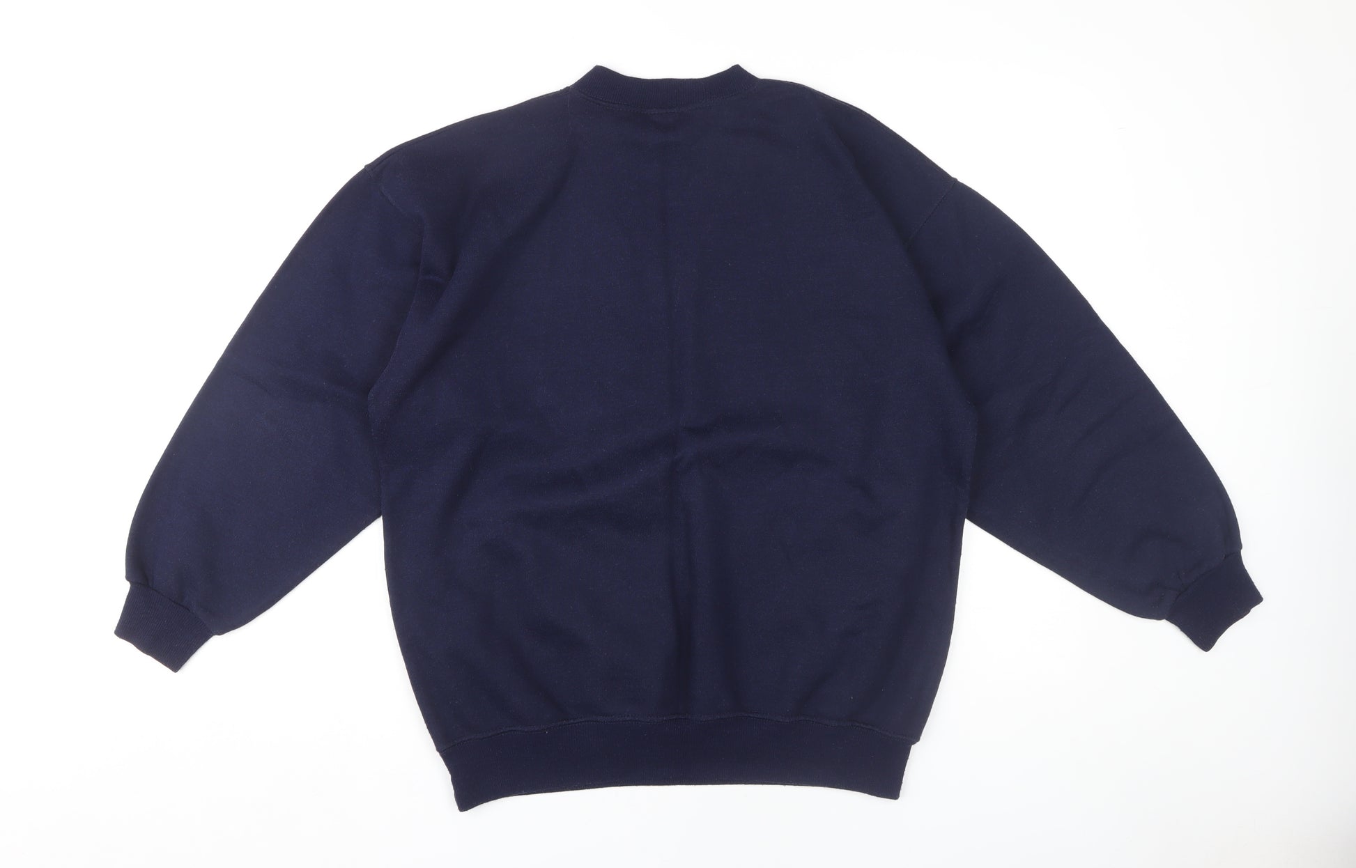Step into timeless style with this Whytes Men's Blue V-Neck Logo Sweatshirt. Crafted in the UK, this classic piece effortlessly combines comfort and sophistication, perfect for elevating your casual wardrobe. Made with a quality blend of 40% cotton, 40% acrylic, and 20% polyester, the sweatshirt promises softness and durability. The rich blue hue and minimalist logo accent provide a versatile option for daily wear or social gatherings. With a V-neck design and long sleeves, it's an ideal choice for layering or wearing on its own. The mid-weight fabric ensures comfort across different seasons, making it a staple piece you'll reach for again and again. Currently in excellent condition, this piece shows slight wear but maintains its charm, ready to complement your style effortlessly. Accommodating a regular fit in a medium size, it offers the perfect balance of comfort and style. Whether dressing up a casual ensemble or adding a touch of refinement to a relaxed look, this Whytes sweatshirt is a versatile addition to any wardrobe.