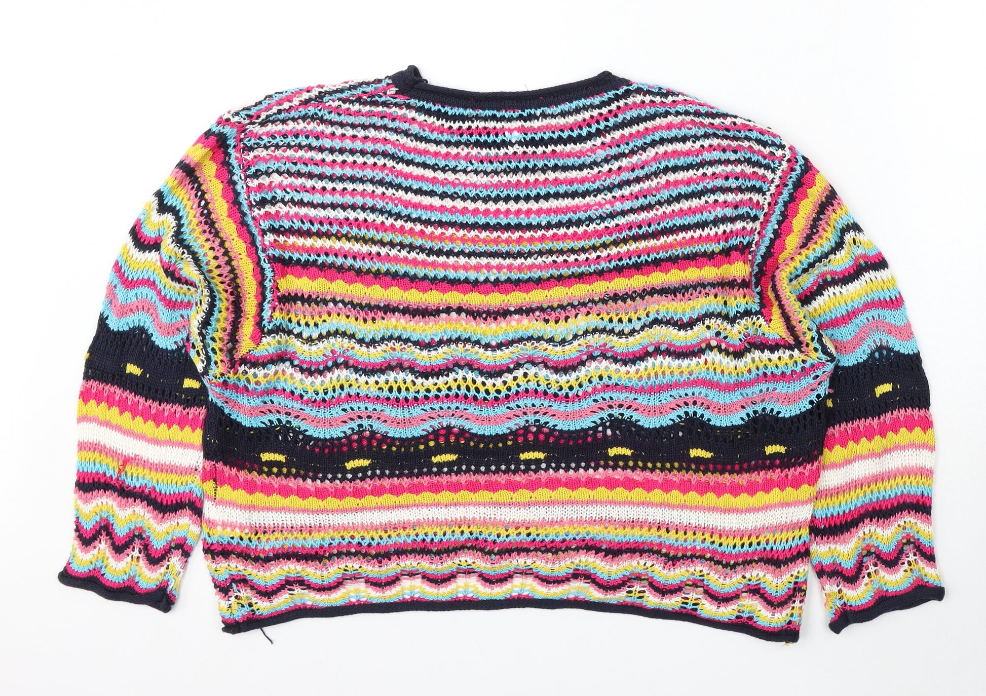Womens Multicoloured Round Neck Geometric Acrylic Pullover Jumper Size M