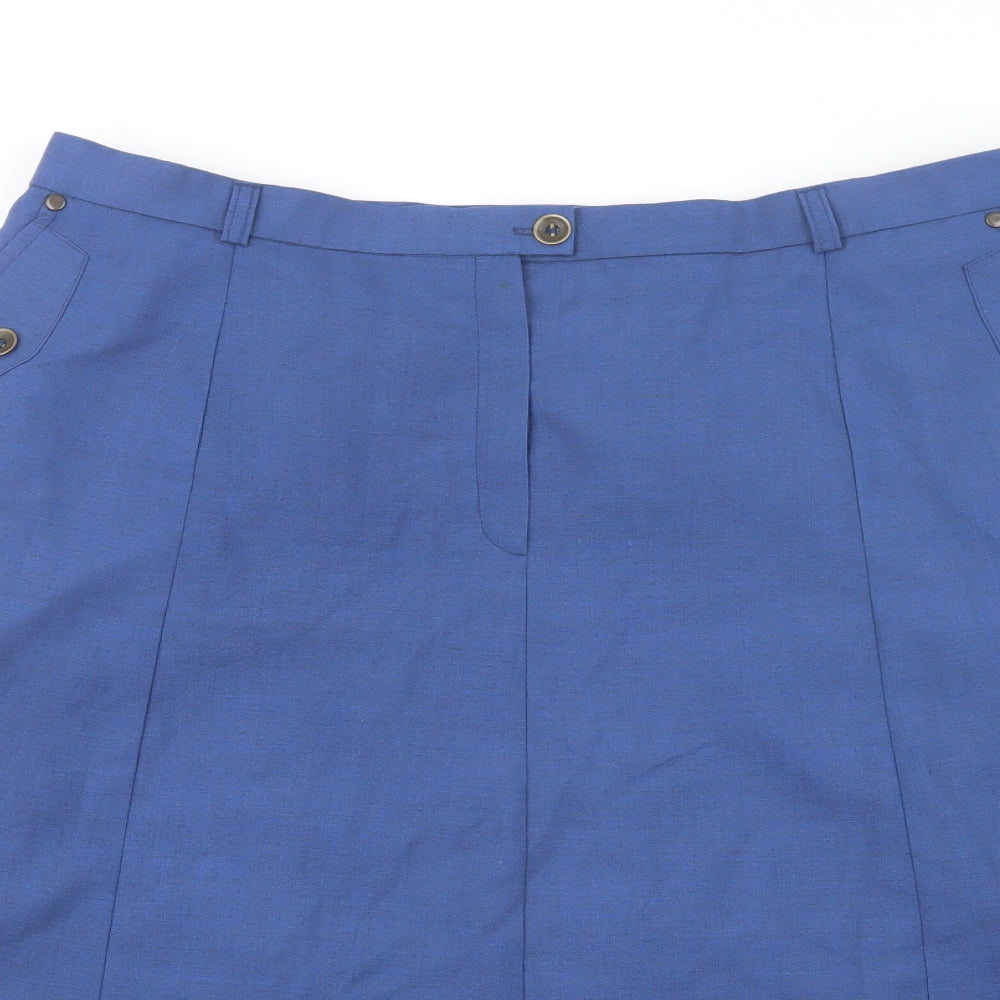 Womens Blue Polyester A-Line Skirt Size 24 Button