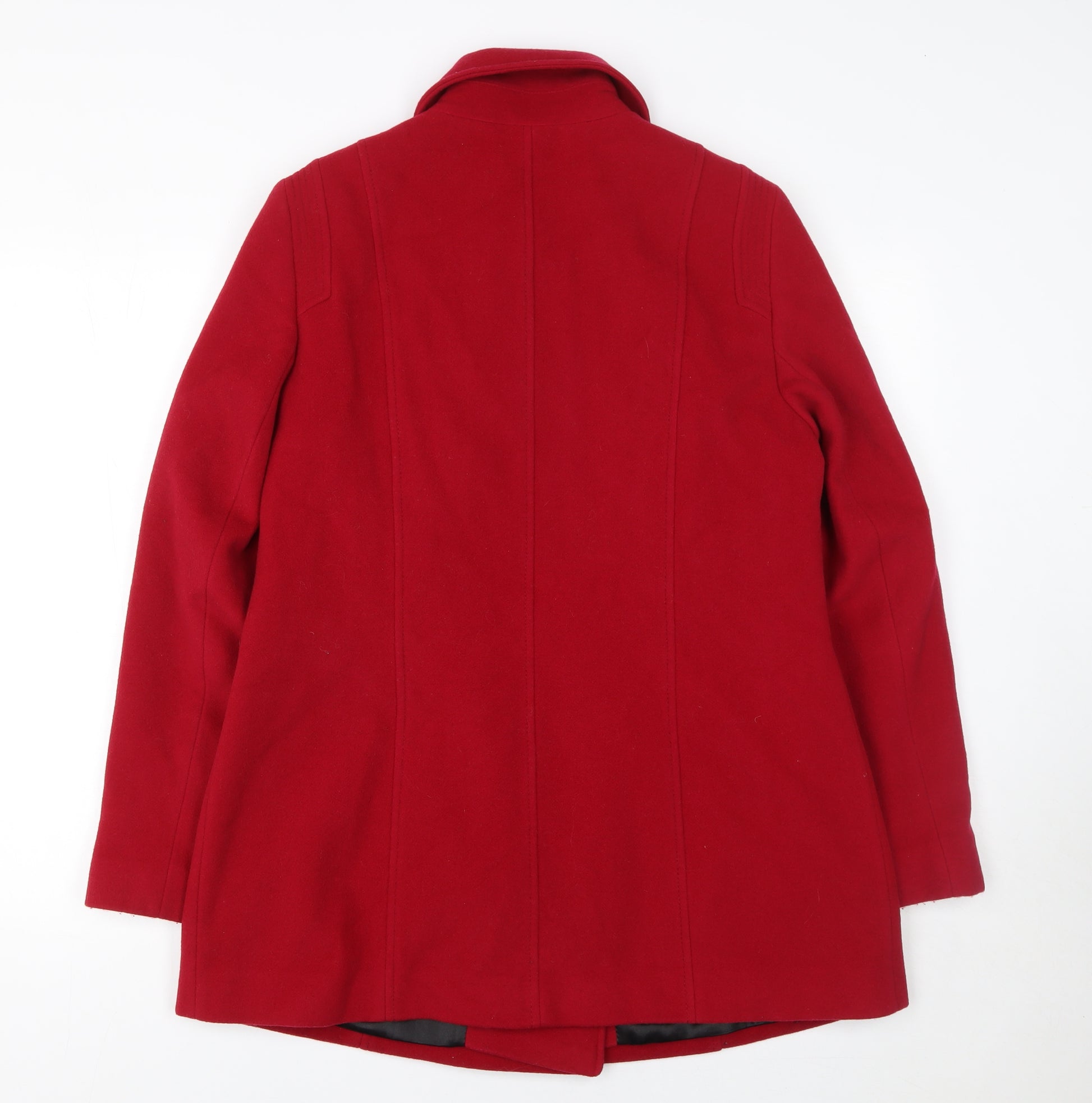 Women Red Wool Blend Pea Coat Size 12 Classic Mid-Length