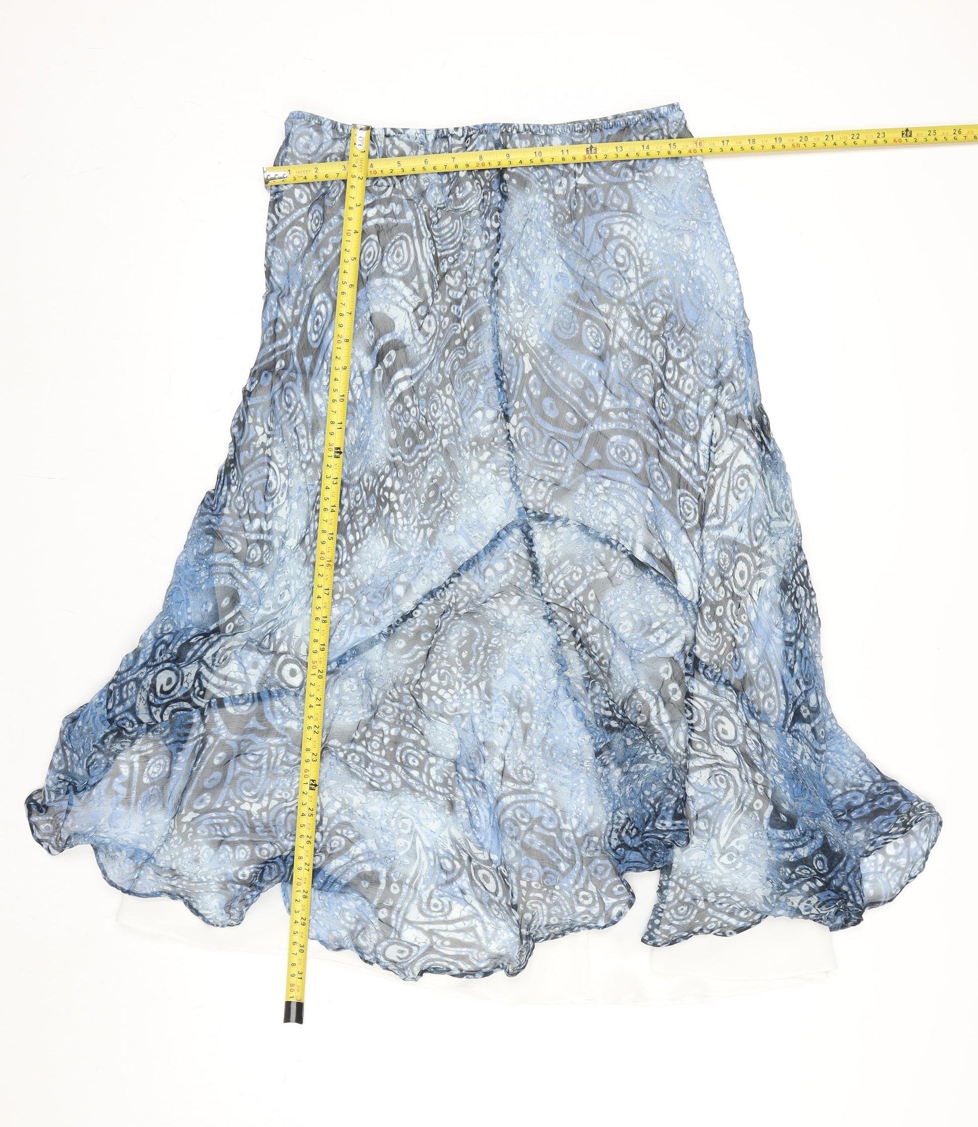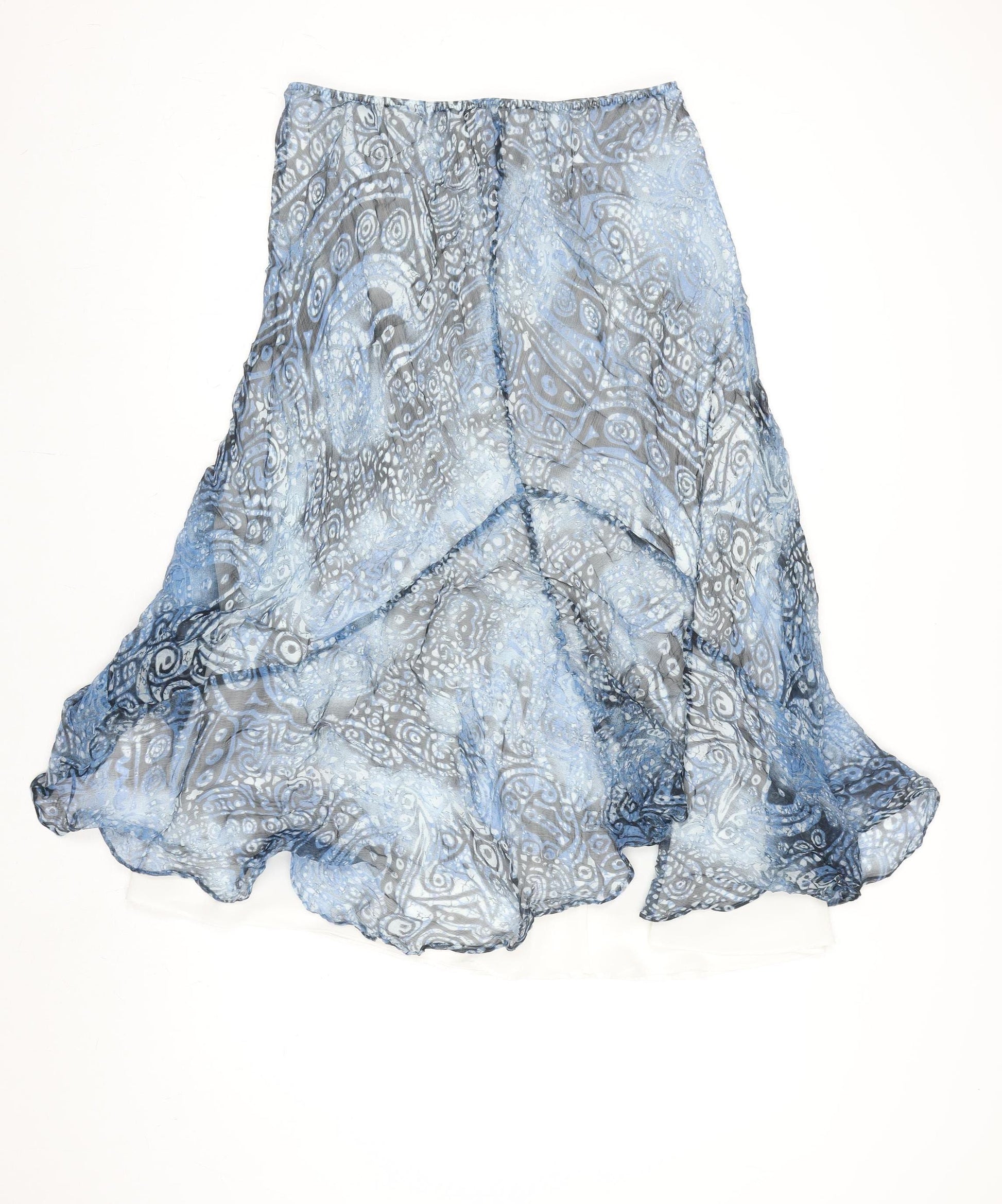 Womens Blue Geometric Flare Midi Chiffon Skirt Size 12