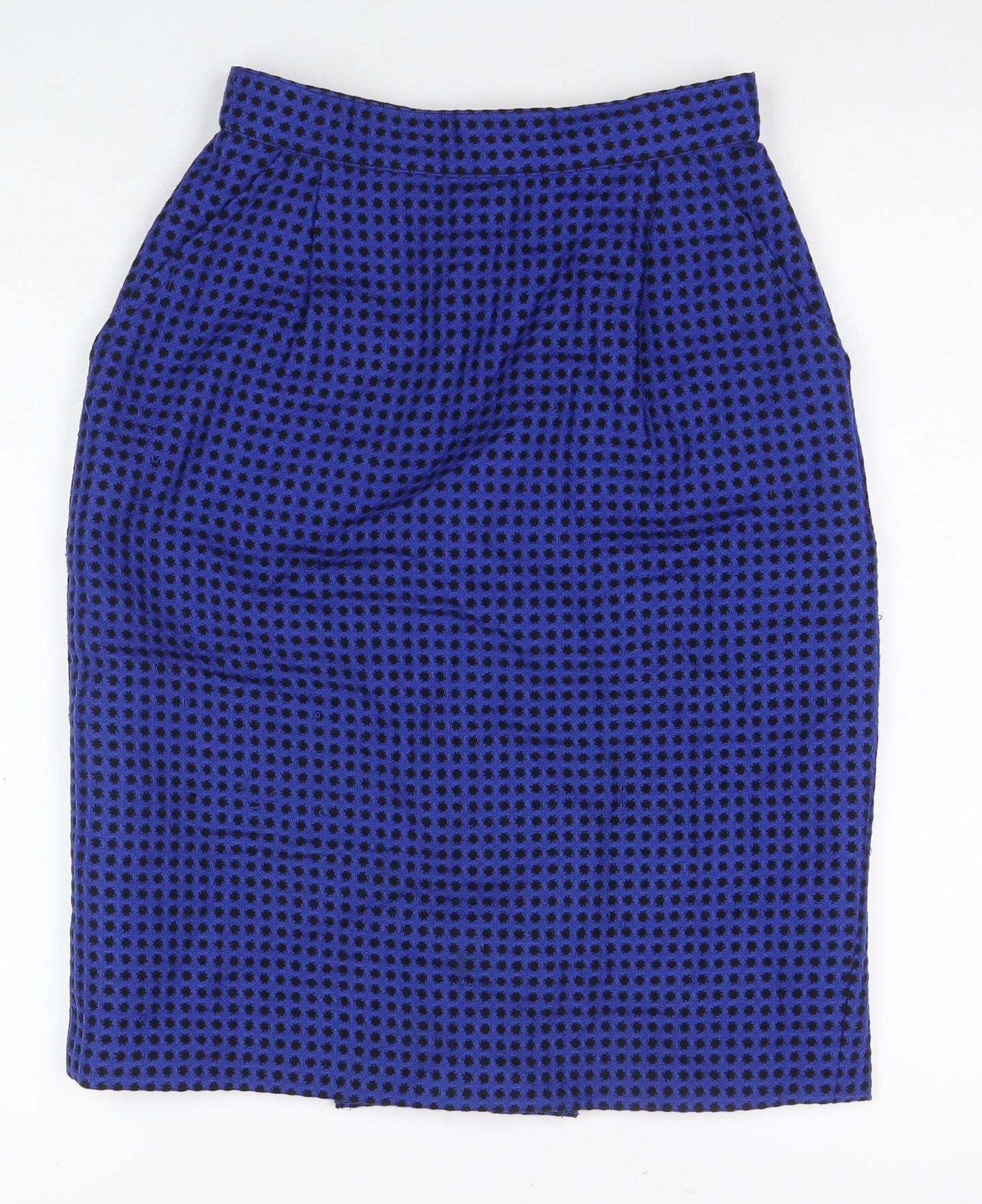 Marks and Spencer Women's Blue Tweed Pencil Skirt Size 10 Belted