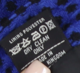 Embrace classic sophistication with this Windsmoor Women's Blue Wool Pencil Skirt. Designed to seamlessly transition from boardroom meetings to elegant dinners, the rich blue hue paired with a distinctive geometric pattern ensures you stand out with grace and poise. Command attention with its high-rise fit and structured straight pencil style, tailored to accentuate your silhouette and provide timeless elegance. Crafted from pure new wool, this skirt promises warmth and comfort, making it an ideal choice for autumn and winter wardrobes. The decorative button accent adds a touch of vintage charm, perfect for those who appreciate retro style. Suitable for a variety of formal occasions, from business settings to chic evening gatherings, this skirt offers versatile styling options. Although it is vintage, it remains in excellent condition with no visible wear, ensuring a polished appearance. Indulge in a piece that not only enhances your personal style but also offers durability and classic appeal. For best results, keep this skirt looking pristine with dry clean only care instructions.