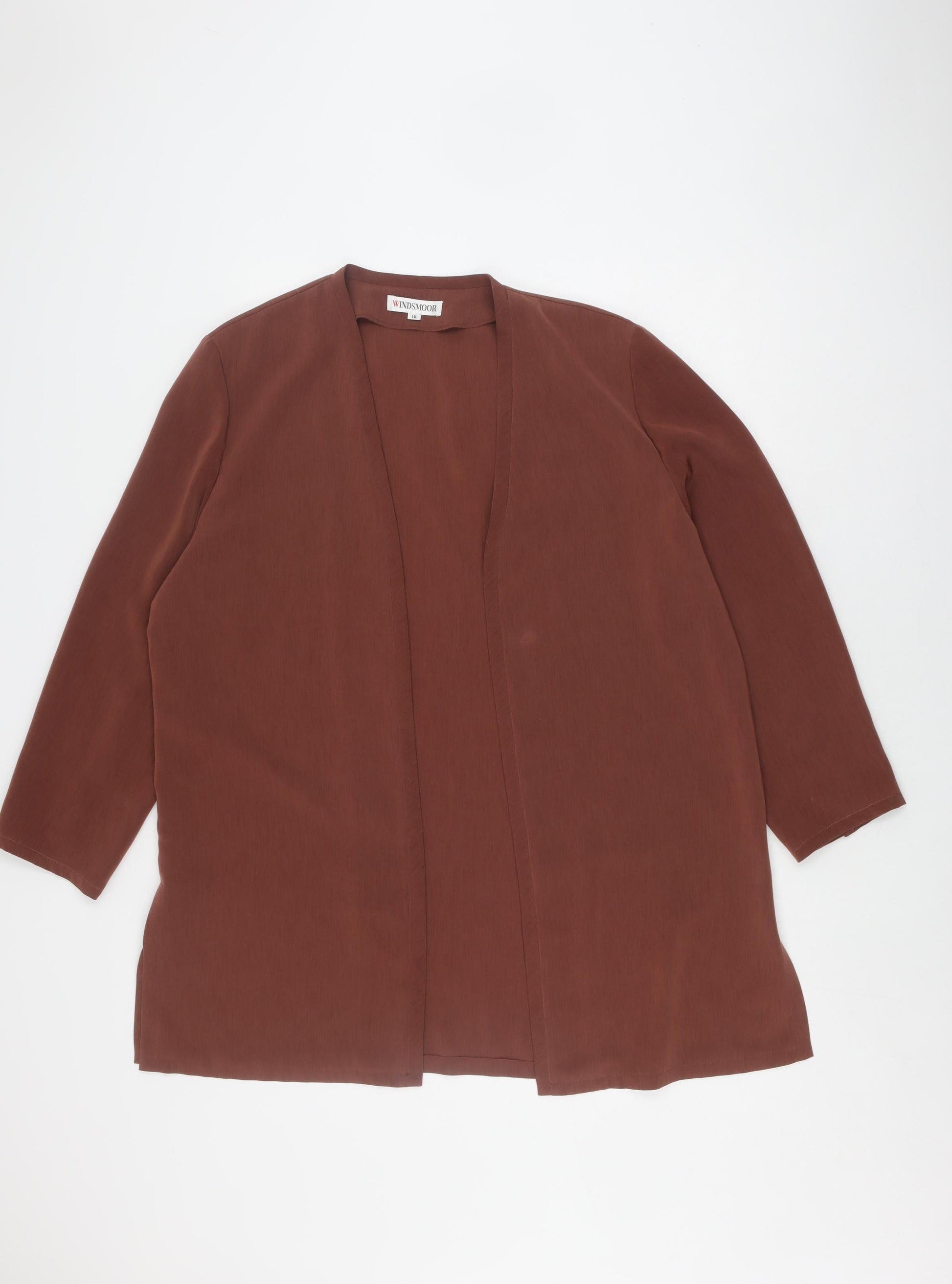 Elevate your wardrobe with this versatile brown blazer from Windsmoor, perfect for both business and casual occasions. Designed for women, this mid-length blazer is a size 16, providing a comfortable and regular fit suitable for many body types. The classic brown colour offers a timeless appeal, ensuring that it complements a wide range of outfits.Crafted from a blend of 97% polyester and 3% elastane, the material ensures durability while offering a slight stretch for ease of movement. This blazer is designed to be machine washable, making it a practical choice for everyday wear. The absence of a pattern adds to its versatility, allowing it to pair effortlessly with vibrant hues or muted tones alike.Featuring a 3/4 sleeve design, this blazer is well-suited for autumn and spring seasons when layered over tops and blouses. With its modern and elegant style, it is perfect for enhancing your business attire or adding a smart touch to casual looks. Whether you're heading to the office or out for a weekend brunch, this blazer serves as a reliable and stylish choice.In excellent condition with clean, well-maintained fabric, this Windsmoor blazer promises to be a staple in your collection. Transform your everyday outfits with this sophisticated piece today.