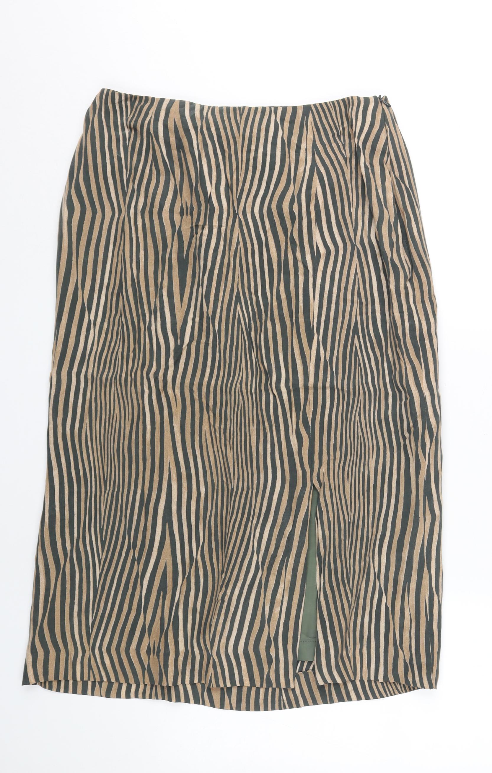 Jaeger Womens Multicoloured Silk A-Line Midi Skirt Size 16