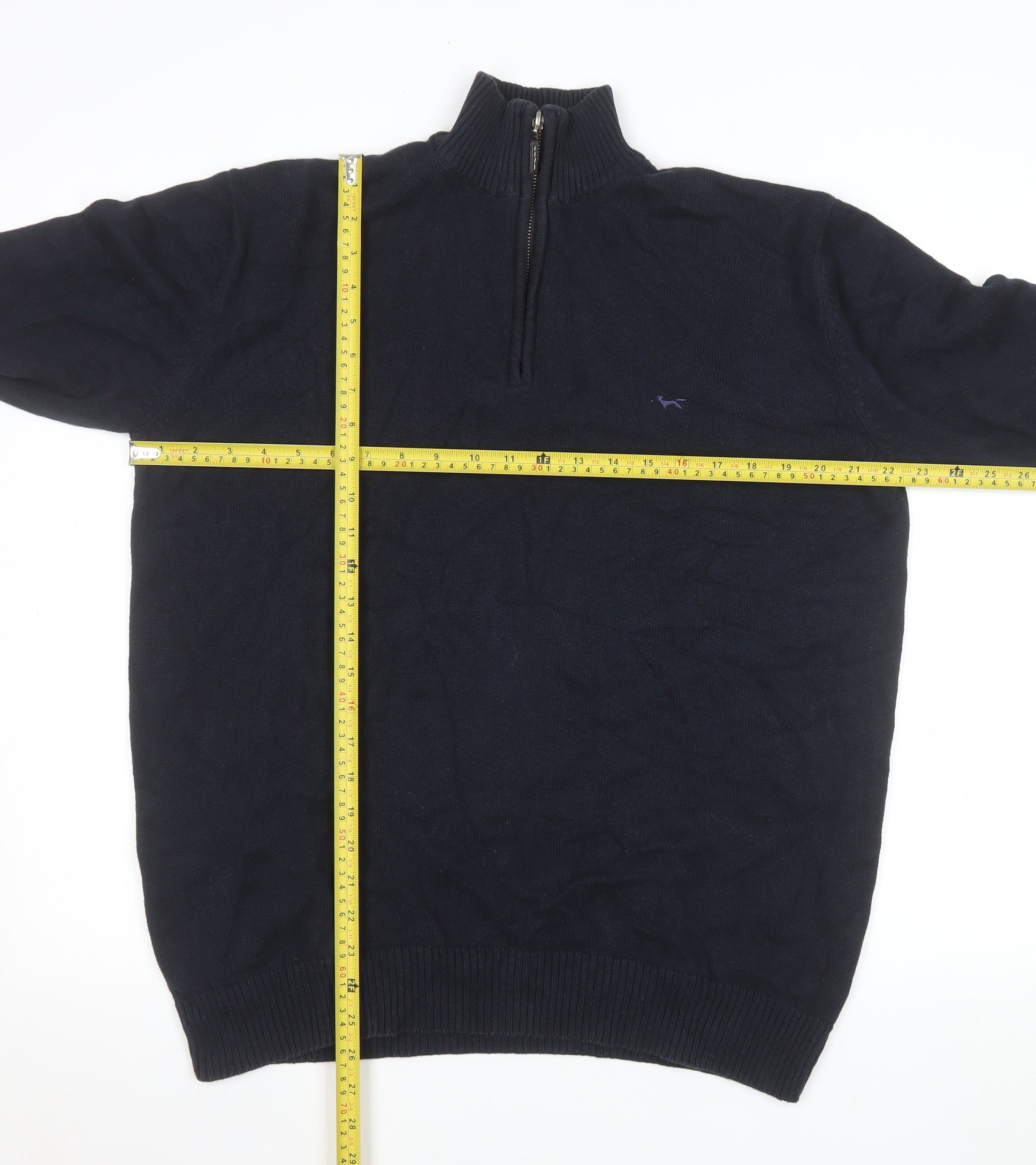 Men's Blue Half Zip Cotton Pullover Sweatshirt Size L