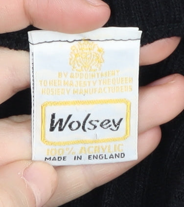 Discover timeless elegance with this women's black vest from Wolsey, crafted in the UK. This vintage piece, made from 100% acrylic, offers a comfortable fit with a warm chunky-knit texture, perfect for maintaining a classic look. The sleeveless design and V-neckline make it an ideal layering choice for a variety of occasions. Ideal for women who appreciate quality and style, this vest maintains excellent condition with minimal signs of wear, showcasing the enduring craftsmanship of Wolsey. Pair it with your favourite jeans or skirts for a sophisticated, understated look that transcends trends. Whether dressing up for business or keeping it casual, this versatile vest is a wardrobe staple for any fashion-conscious individual. Secure this unique piece today and add a touch of class to your collection.