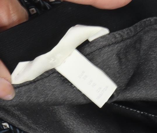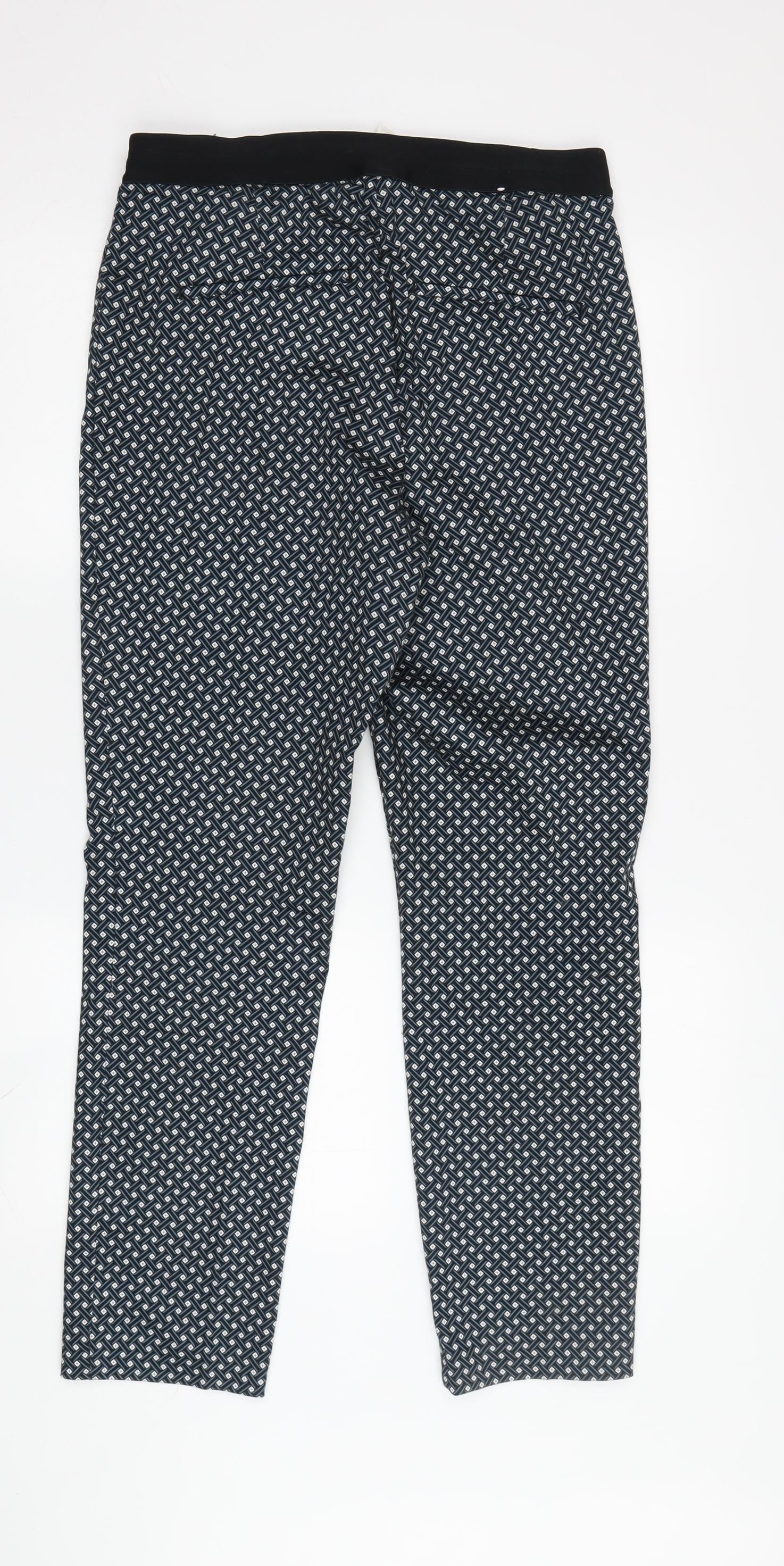 Step out in style with these chic women's trousers, perfect for casual outings or everyday wear. Rendered in a striking black colour, these trousers feature an eye-catching geometric pattern that adds a touch of modern elegance to your wardrobe. Crafted from a comfortable blend of polyester and elastane, they offer a slight stretch for added comfort and ease of movement. The elastic waistband ensures a snug fit, making these trousers an ideal choice for long hours of wear. Designed in a size Large, they cater to a regular fit, suiting a variety of body types. While details about the leg style or closure are minimal, their simplicity speaks to a wide range of styling possibilities, allowing you to pair them with your favourite tops and shoes effortlessly. Whether you're heading out for a coffee date or a shopping spree, these trousers are your go-to option for blending style with comfort effortlessly. Seize the opportunity to add a versatile piece to your wardrobe that promises to remain in vogue for seasons to come.