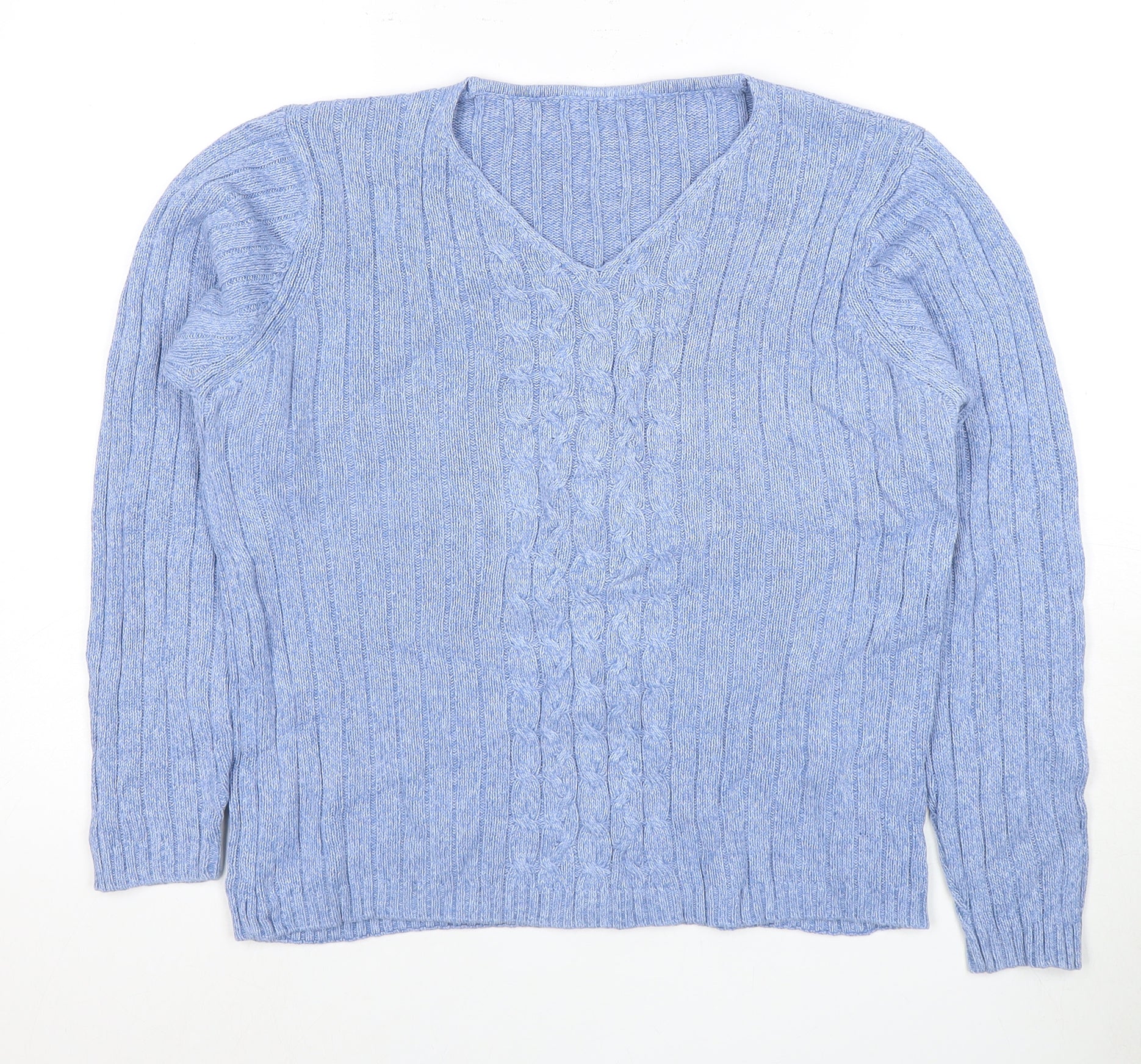 Women's Blue Cable Knit V-Neck Pullover Jumper Size 12