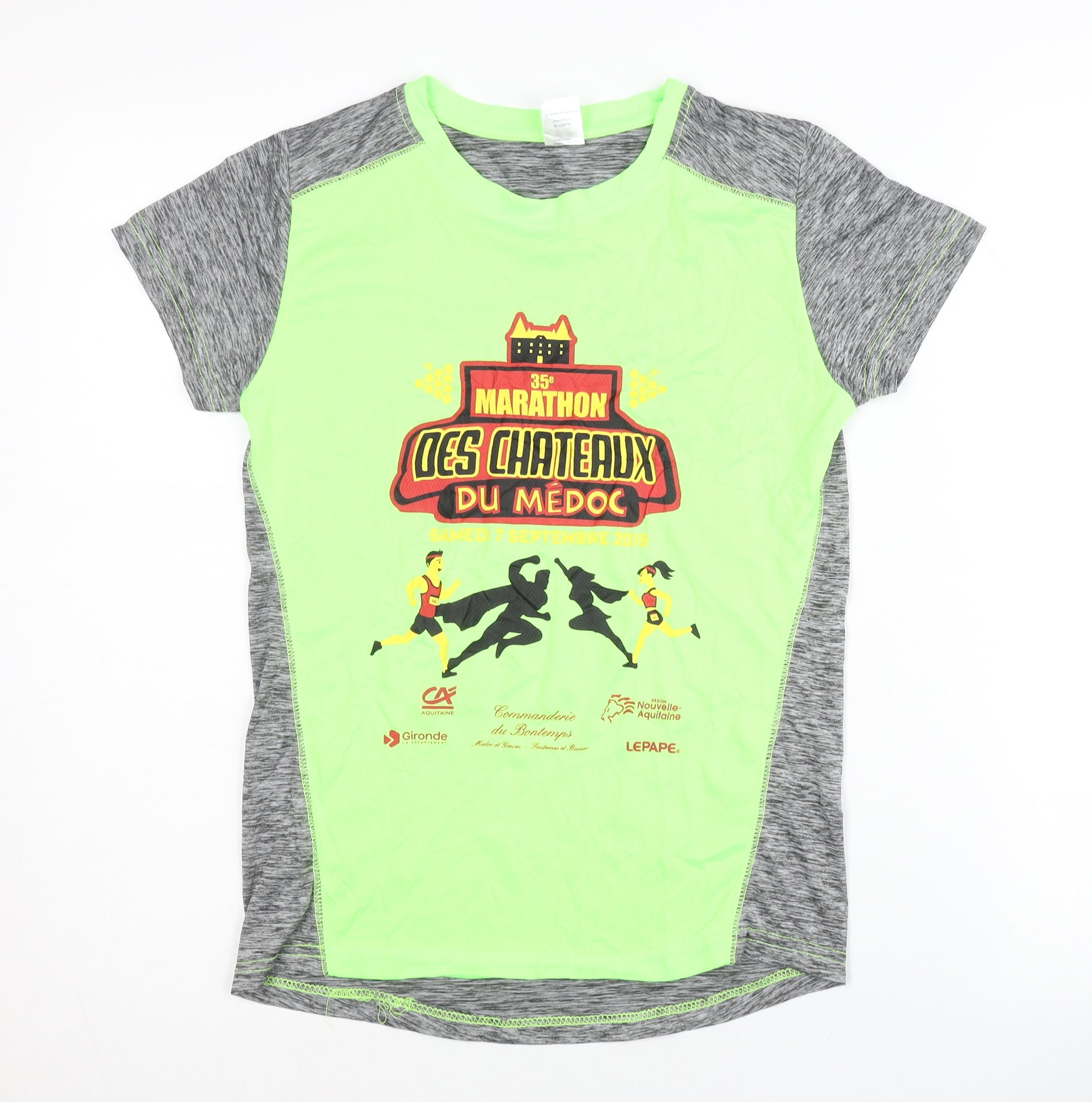 Embrace your athletic side with this vibrant Women's Marathon T-Shirt. Perfect for running and jogging enthusiasts, this top offers a blend of style and comfort. The short-sleeve design in striking green and grey is ideal for outdoor activities during spring, summer, or autumn. Crafted from 100% polyester, this jersey-style shirt ensures a lightweight, breathable fit, making it perfect for those challenging outdoor runs. Featuring a crew neck and regular fit, it provides ample room for movement while maintaining a flattering silhouette. Its humorous and sporty theme adds a fun twist, showcasing a playful print that's sure to keep your spirits high during a marathon. With its easy machine-washable fabric, maintenance is a breeze, letting you focus on your performance. Though used, it's in excellent condition, promising durability for your active lifestyle. Whether you're a seasoned runner or just starting your fitness journey, this Marathon T-Shirt is the perfect addition to your athletic wardrobe, offering both functionality and flair.