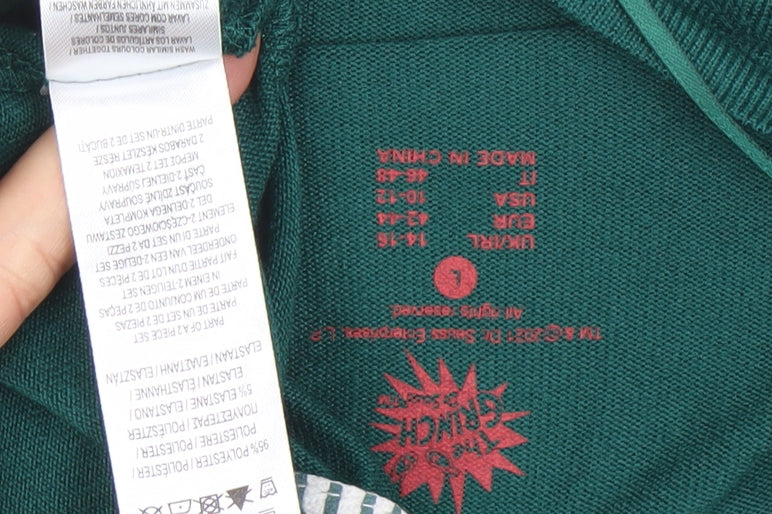 Get into the festive spirit with this playful women’s Grinch Christmas long sleeve pyjama top. Crafted in a soft and breathable cotton-rich jersey blend, this cosy top is perfect for relaxing evenings or enjoying a winter movie marathon. The rich green colour sets off a bold graphic print of the Grinch wearing his iconic Santa hat, bringing a touch of humour and nostalgia to your nightwear this season. Featuring a relaxed T-shirt style cut with a classic crew neckline and long sleeves, it offers both comfort and style for cold winter nights. Made from a quality blend of 94% cotton, 5% polyester, and 1% elastane, it ensures just the right amount of flexibility and durability, ideal for lounging or sleeping. The simple pullover design adds ease, while the lightweight fabric keeps you comfortable without overheating. Whether you’re gifting it to a fan of the classic story or treating yourself, this pyjama top captures the spirit of the season with fun movie-inspired character charm. Pair it with matching pyjama bottoms or soft lounge trousers to complete the perfect festive look. In excellent pre-owned condition with no visible flaws, this top provides great value and characterful style at a fraction of the new price. Ideal for cosy nights or themed Christmas mornings alike, it’s a must-have addition to any winter sleepwear collection.
